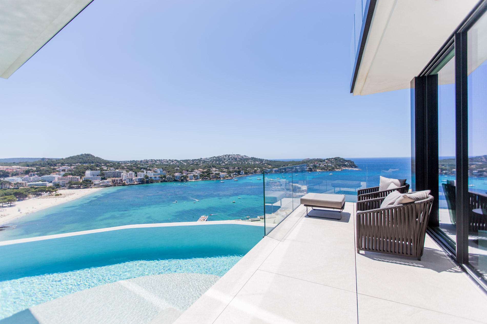 Una villa que convierte el paisaje en arte y el hogar en experiencia.En la zona alta de Santa Ponsa, con vistas que se pierden en la inmensidad azul del mar y abrazan la tranquilidad de las montañas, se alza esta villa de arquitectura contemporánea como una declaración de estilo, de sensibilidad y de vida. Aquí no se trata solo de lujo, sino de una nueva forma de habitar: más consciente, más conectada, más inspiradora.