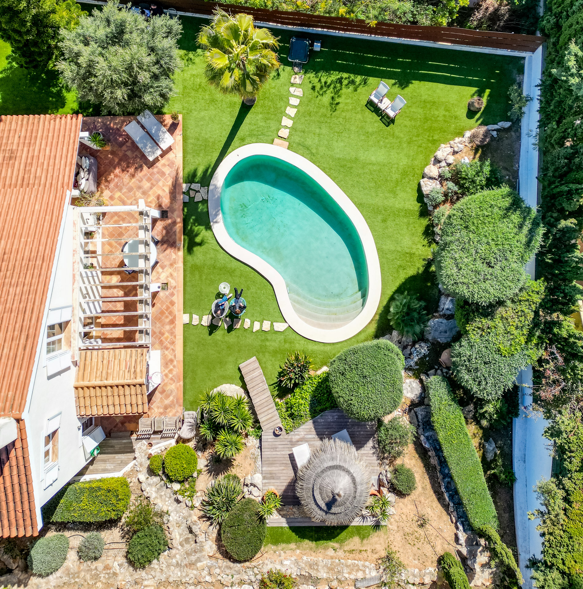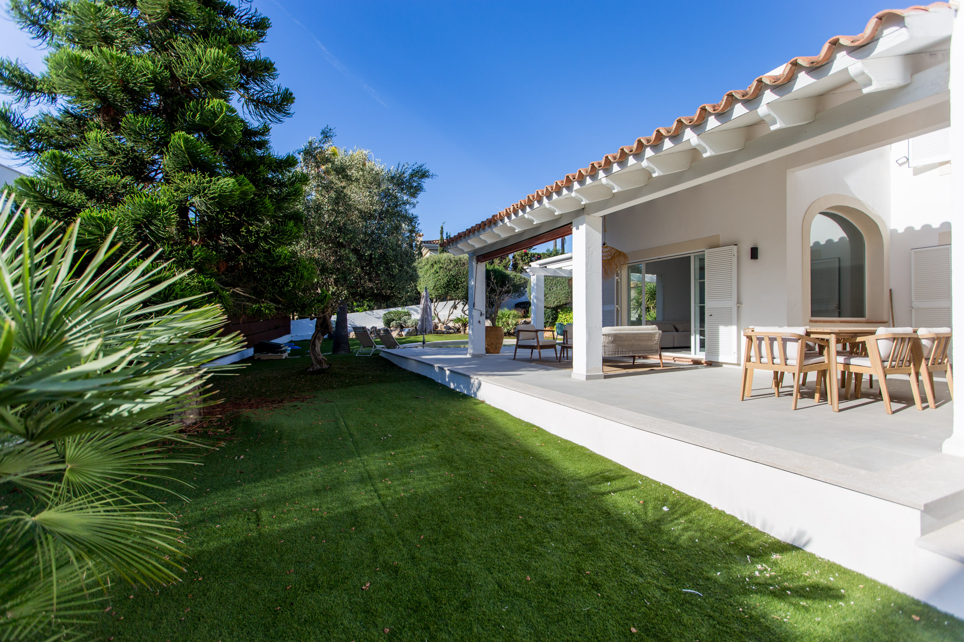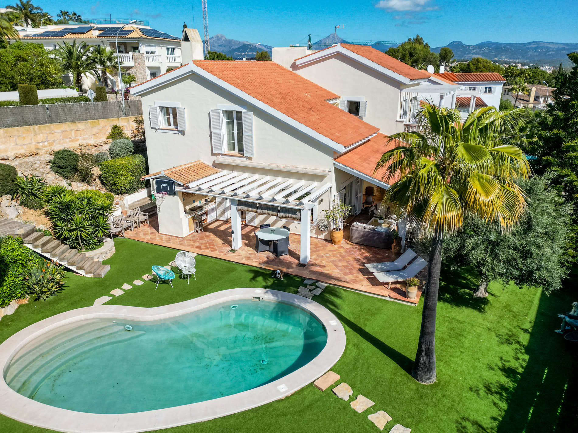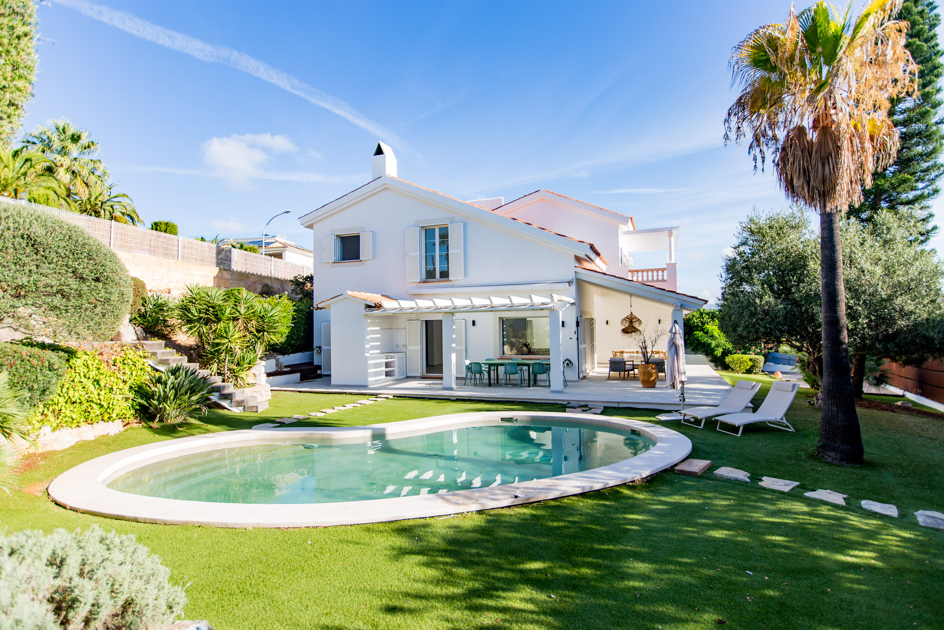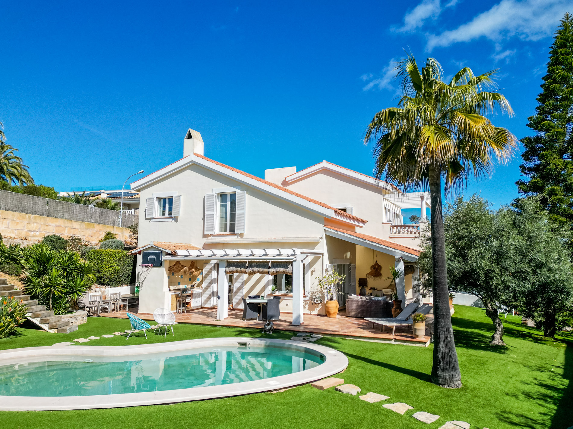 Enclavada en una de las zonas más exclusivas y tranquilas de Santa Ponsa, esta acogedora villa de estilo mediterráneo combina a la perfección el encanto tradicional con el confort moderno. Se levanta sobre un amplio solar que regala privacidad y serenidad, rodeado de un precioso jardín cuidado al detalle, donde cada rincón invita al descanso y al disfrute al aire libre. Entre sus atractivos exteriores destaca una encantadora casita de invitados, ideal para recibir a familiares y amigos, además de varias terrazas situadas en distintas orientaciones que permiten vivir el jardín en cualquier momento del día. La villa se distribuye en dos plantas que sorprenden por la amplitud de los espacios y la abundante luz natural. Al cruzar la puerta principal, la doble altura del recibidor marca el carácter de la casa, transmitiendo una sensación de espacio abierto y luminoso que se prolonga hacia las estancias principales. En la planta superior se encuentra un gran dormitorio principal concebido como un verdadero refugio privado, con vestidor, baño en suite y una práctica zona de despacho independiente, perfecta para teletrabajar o crear un espacio íntimo de lectura. En la planta baja, la vida se desarrolla en un elegante salón de doble altura con grandes ventanales que conectan directamente con la terraza, el jardín y la piscina, creando una relación fluida entre interior y exterior. La moderna cocina abierta se integra con el comedor, haciendo de esta área un espacio social ideal para compartir con familia y amigos. Esta planta alberga también una sala de billar para el ocio, tres dormitorios adicionales —uno de ellos con baño en suite—, un baño completo y una zona de coladuría que añade practicidad al día a día. El exterior ha sido diseñado para disfrutar del estilo de vida mediterráneo: desde la refrescante piscina hasta la zona de barbacoa donde organizar inolvidables veladas, pasando por un cuidado jardín con una pista de petanca que aporta un toque auténtico y lúdico. Además, la propiedad dispone de garaje, aportando comodidad y funcionalidad. MallorcaSite, su agencia inmobiliaria en Mallorca, recomienda esta villa por su ubicación privilegiada en una zona residencial tranquila, por su amplitud y versatilidad, y por ser una opción perfecta para familias que buscan combinar comodidad, privacidad y calidad de vida en una de las áreas más codiciadas de la isla.