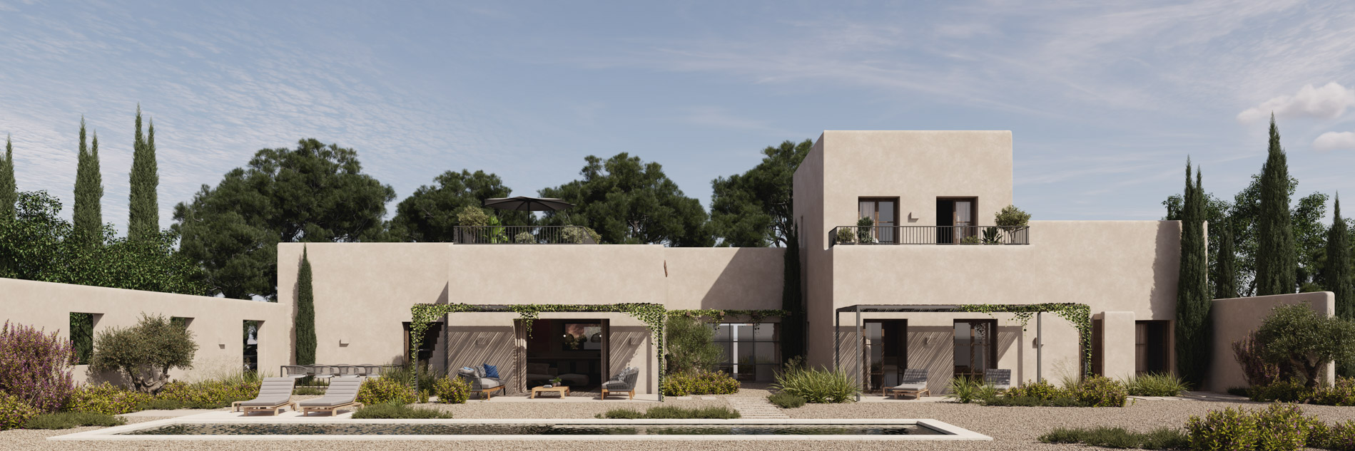 Presentamos una excepcional oportunidad de adquirir una villa unifamiliar de nueva construcción ubicada en el sureste de Mallorca, entre Ses Salines y Santanyí. El proyecto contempla una elegante vivienda de 398 m² con piscina, situada en una amplia parcela de 16.738 m² que garantiza privacidad, tranquilidad y un entorno natural privilegiado.