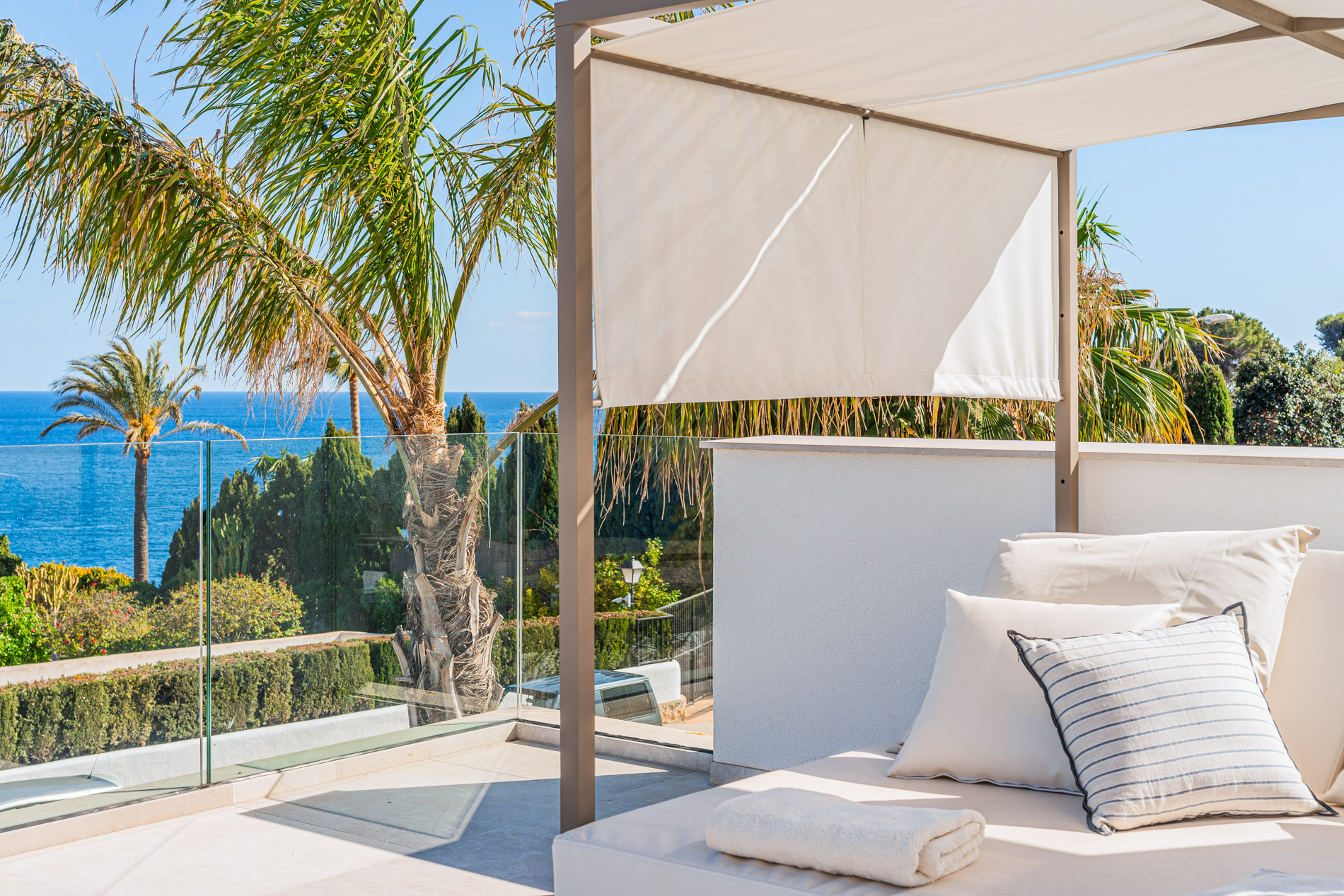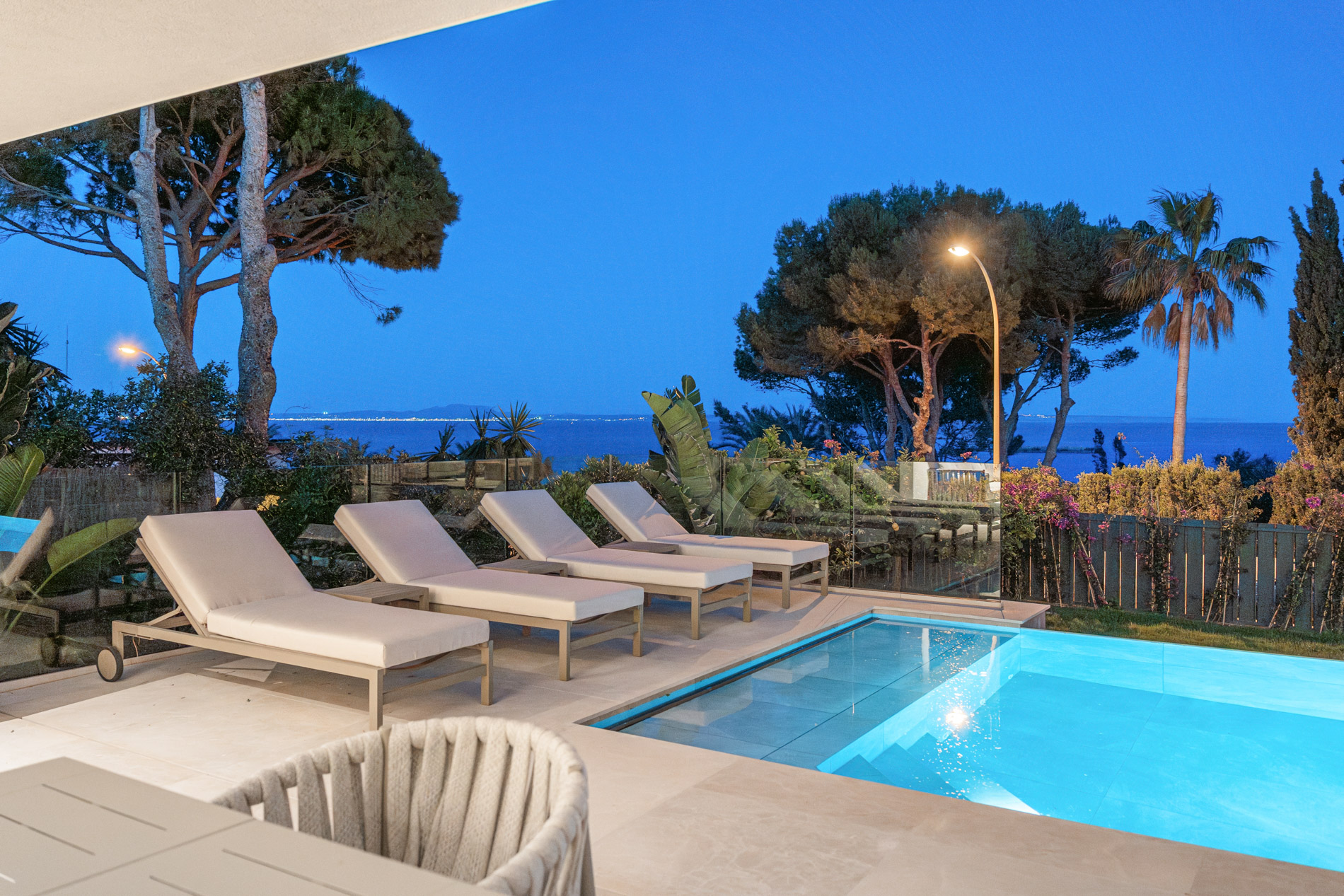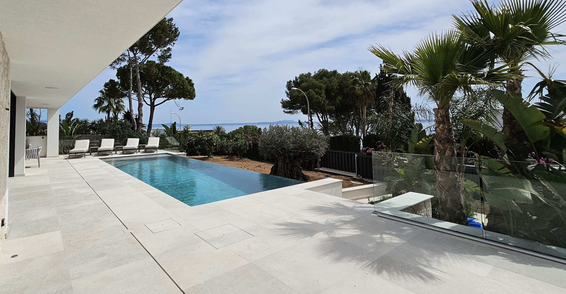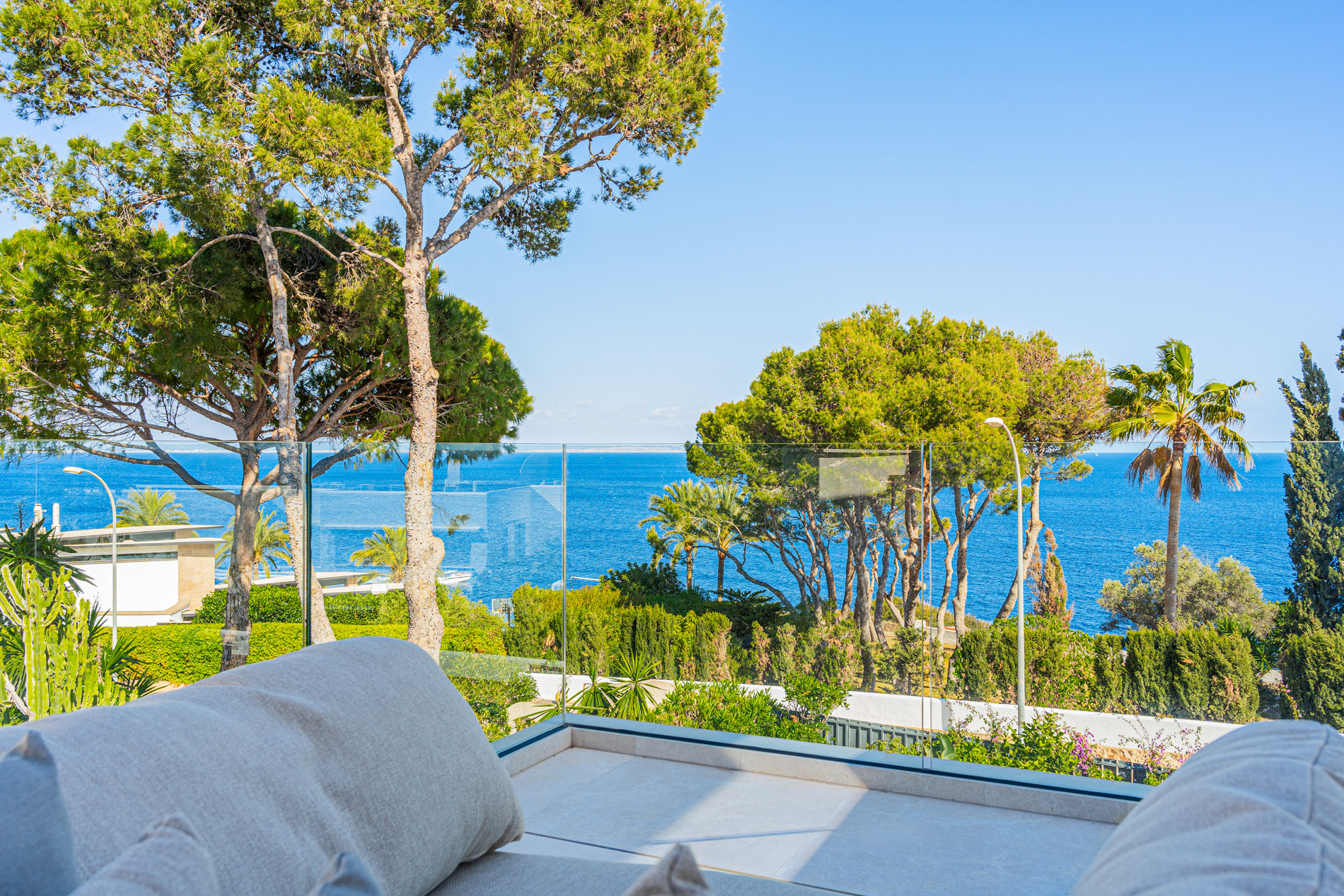 Esta lujosa villa combina a la perfección el encanto histórico con la elegancia moderna. Originalmente construida para Pilar de Borbón, hermana del antiguo rey español Juan Carlos, esta exquisita residencia mediterránea ofrece una historia de esplendor real junto con todas las comodidades de la vida contemporánea. Los escudos originales de la familia real española todavía adornan la entrada, recordando su distinguido linaje. Ubicada en una segunda línea privilegiada junto al mar, esta propiedad orientada al sur ofrece vistas impresionantes al mar desde todas las habitaciones. La parcela, llana y tranquila, garantiza una excelente privacidad y un ambiente sereno. Construida recientemente, la villa incorpora las últimas tecnologías de eficiencia energética. Esto incluye un sistema de control inteligente del hogar, una bomba de calor de fuente de aire moderna, calefacción por suelo radiante controlable individualmente, un potente sistema de aire acondicionado, una piscina de agua salada climatizada con cubierta solar y un amplio sistema fotovoltaico que cubre gran parte de las necesidades energéticas de la villa. El uso de materiales de alta calidad como piedra natural y suelos de parqué de roble, junto con una cocina de diseño lujoso de Espacio equipada con electrodomésticos Gaggenau, resalta la exclusividad de esta propiedad. Ofrece amplias zonas de estar que se extienden sobre extensas terrazas, el jardín y la zona de la piscina, desde donde se puede admirar el mar azul celeste. Además, cuenta con un garaje doble y plazas de aparcamiento exteriores adicionales en la parcela, proporcionando un amplio espacio de estacionamiento. Mallorcasite, su agencia inmobiliaria en Mallorca, recomienda encarecidamente esta propiedad por su ubicación, excelentes calidades y vistas impresionantes.