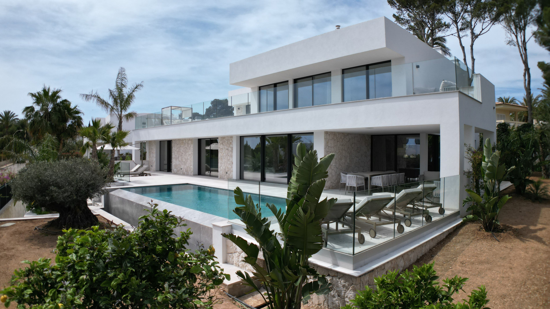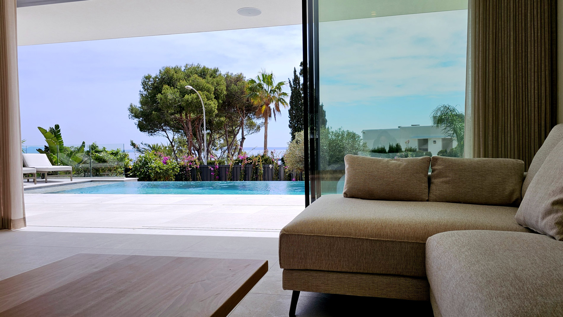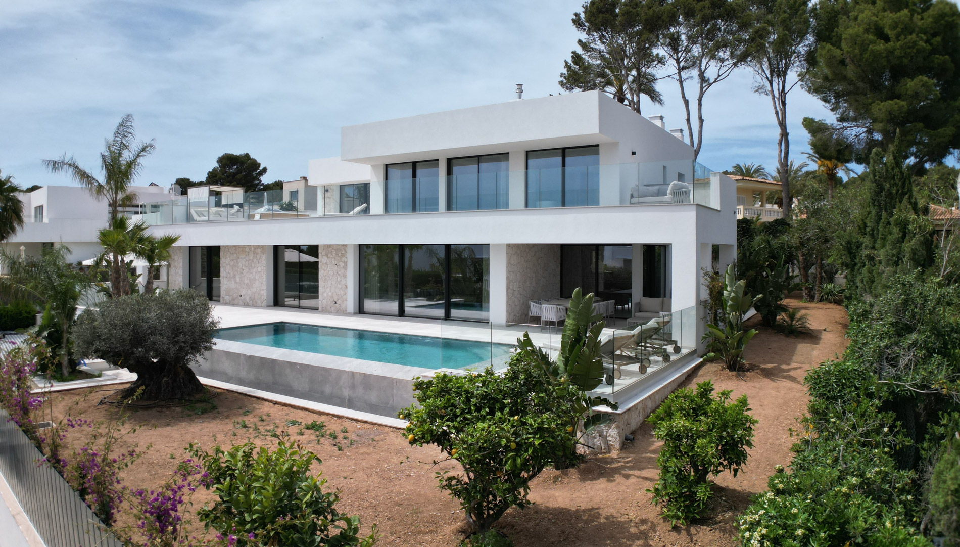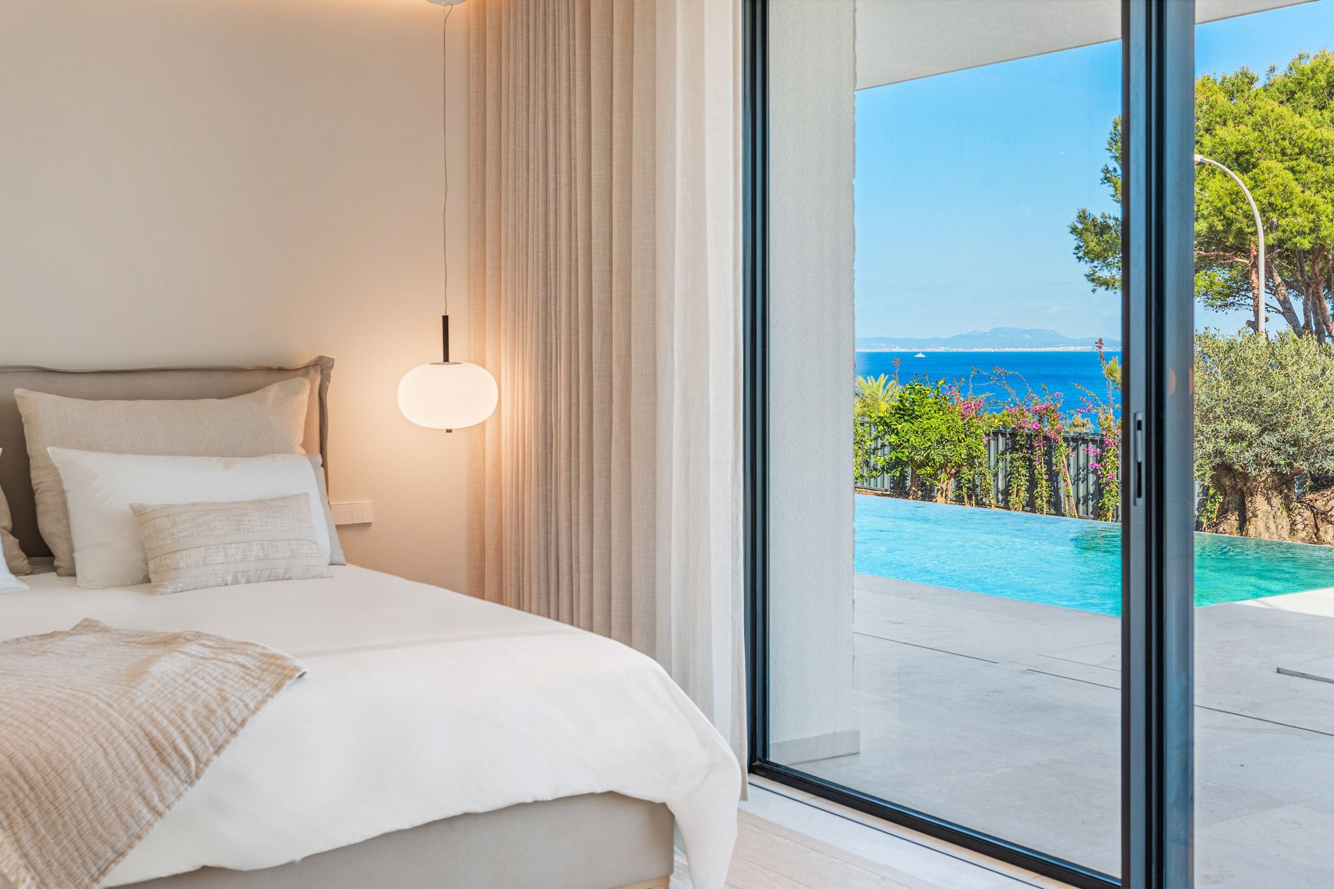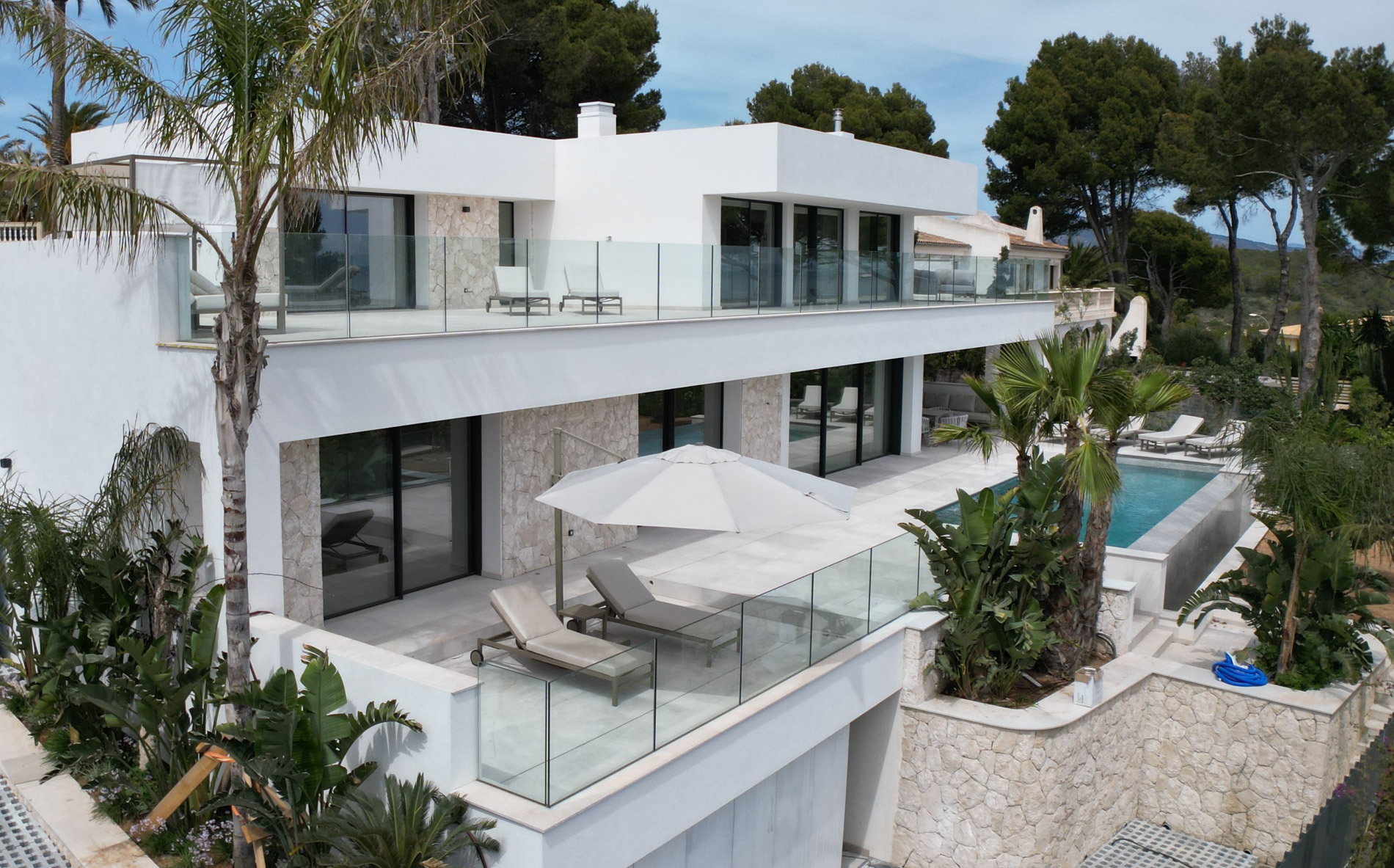 Esta lujosa villa combina a la perfección el encanto histórico con la elegancia moderna. Originalmente construida para Pilar de Borbón, hermana del antiguo rey español Juan Carlos, esta exquisita residencia mediterránea ofrece una historia de esplendor real junto con todas las comodidades de la vida contemporánea. Los escudos originales de la familia real española todavía adornan la entrada, recordando su distinguido linaje. Ubicada en una segunda línea privilegiada junto al mar, esta propiedad orientada al sur ofrece vistas impresionantes al mar desde todas las habitaciones. La parcela, llana y tranquila, garantiza una excelente privacidad y un ambiente sereno. Construida recientemente, la villa incorpora las últimas tecnologías de eficiencia energética. Esto incluye un sistema de control inteligente del hogar, una bomba de calor de fuente de aire moderna, calefacción por suelo radiante controlable individualmente, un potente sistema de aire acondicionado, una piscina de agua salada climatizada con cubierta solar y un amplio sistema fotovoltaico que cubre gran parte de las necesidades energéticas de la villa. El uso de materiales de alta calidad como piedra natural y suelos de parqué de roble, junto con una cocina de diseño lujoso de Espacio equipada con electrodomésticos Gaggenau, resalta la exclusividad de esta propiedad. Ofrece amplias zonas de estar que se extienden sobre extensas terrazas, el jardín y la zona de la piscina, desde donde se puede admirar el mar azul celeste. Además, cuenta con un garaje doble y plazas de aparcamiento exteriores adicionales en la parcela, proporcionando un amplio espacio de estacionamiento. Mallorcasite, su agencia inmobiliaria en Mallorca, recomienda encarecidamente esta propiedad por su ubicación, excelentes calidades y vistas impresionantes.