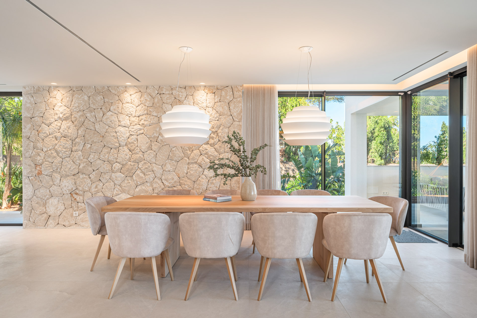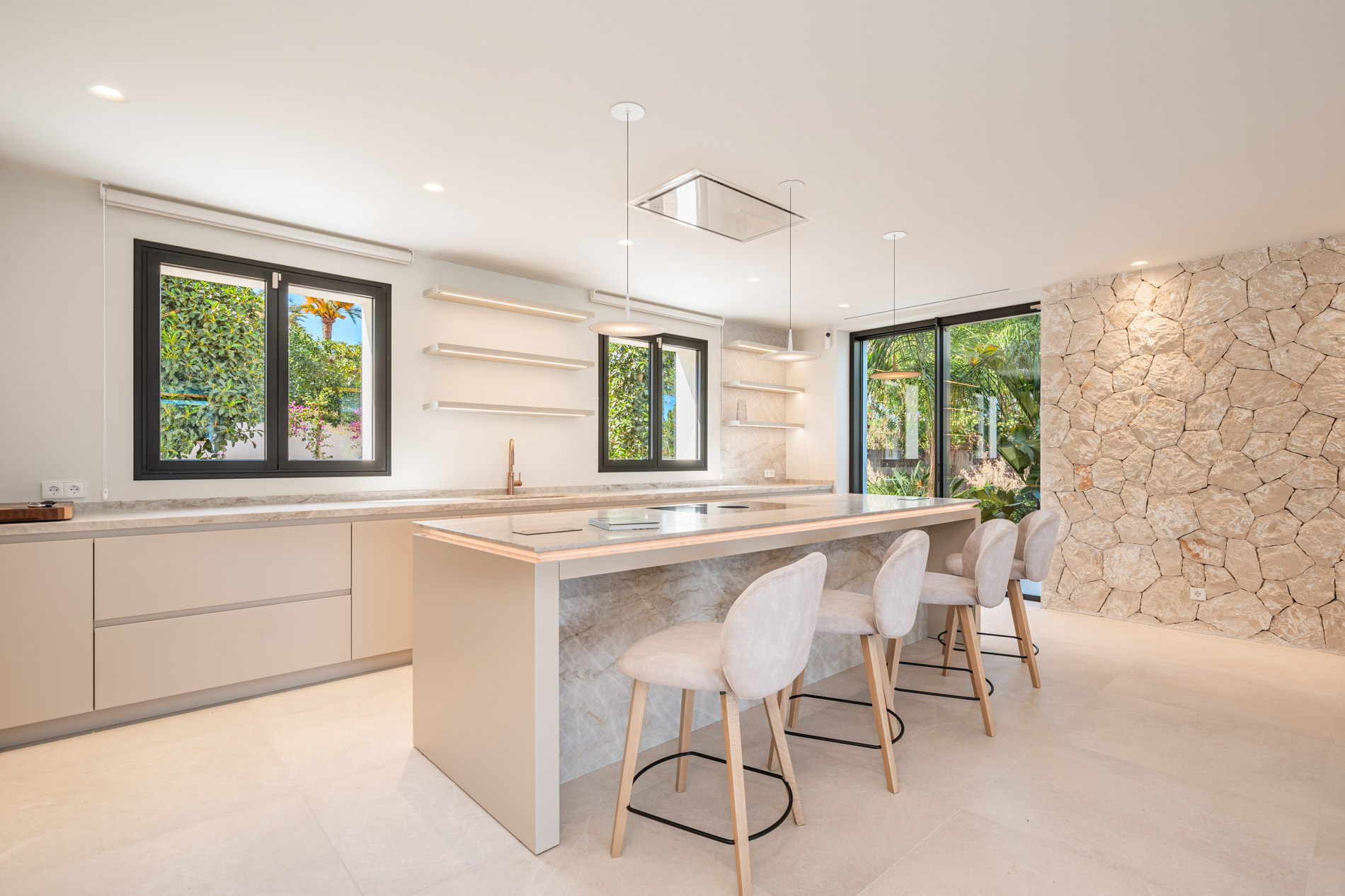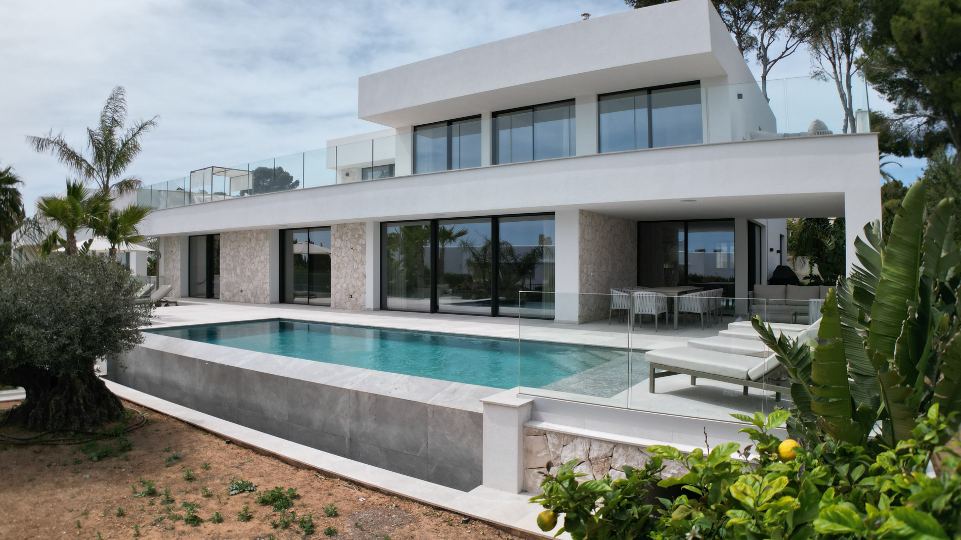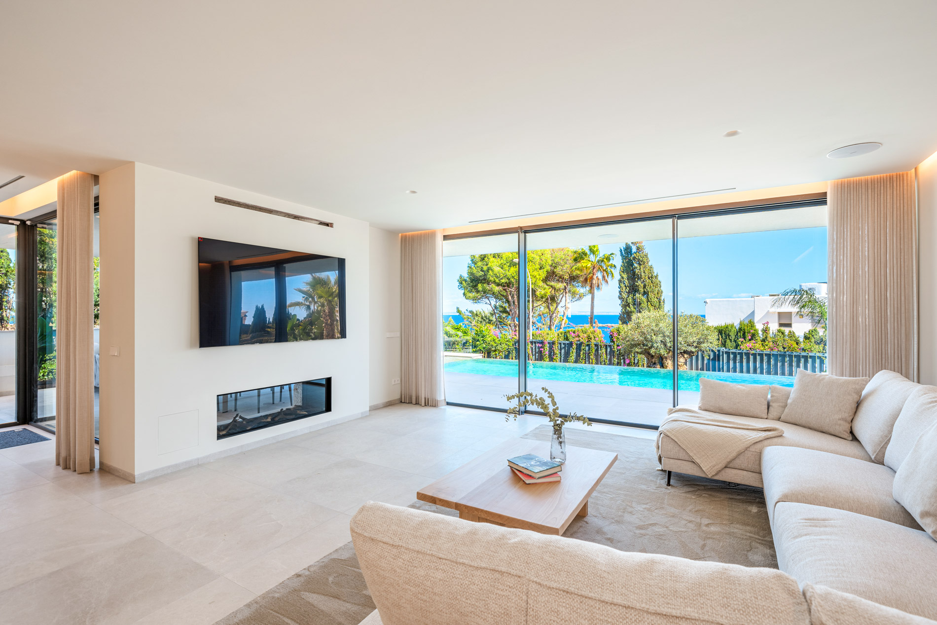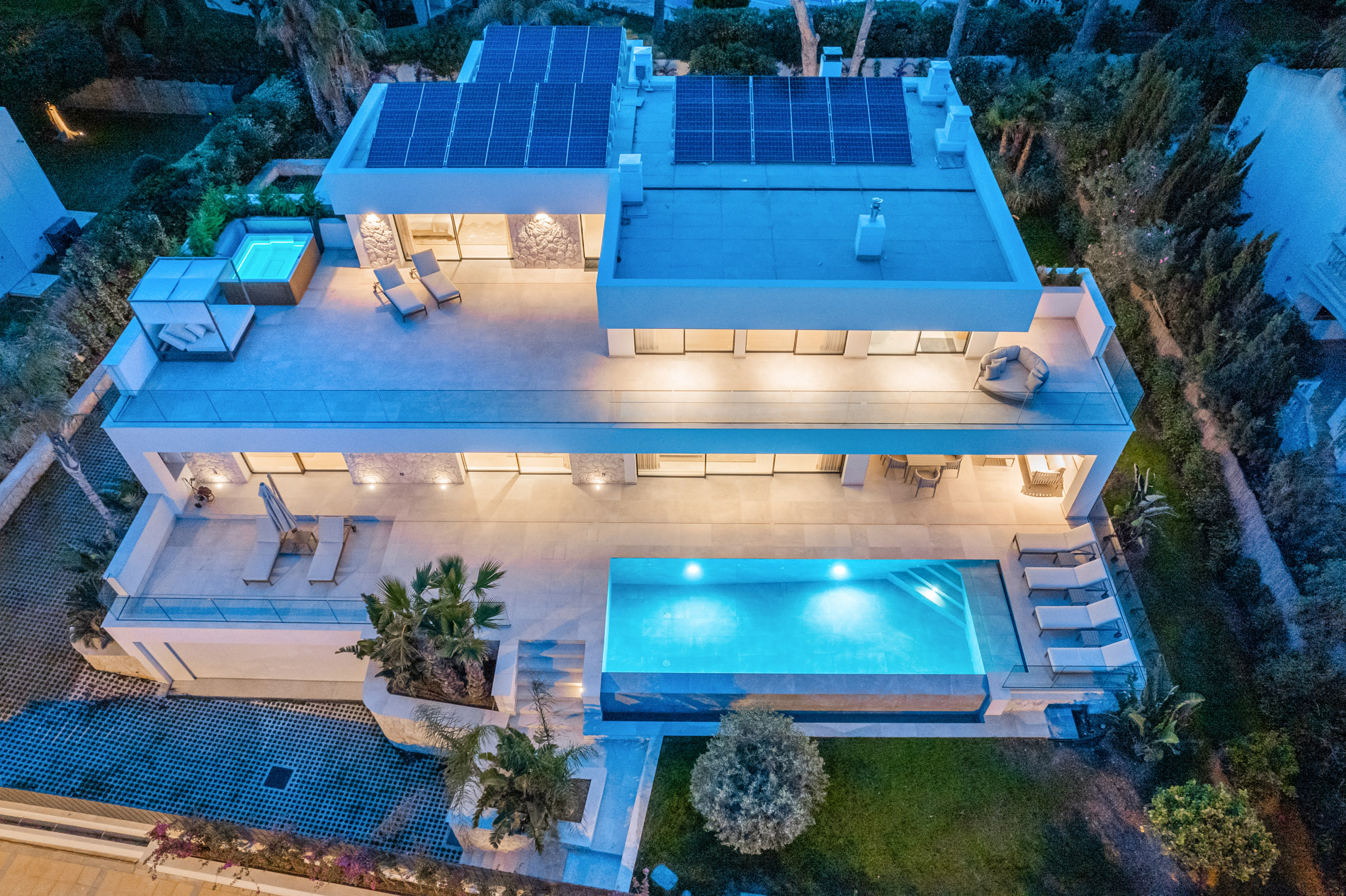 Esta lujosa villa combina a la perfección el encanto histórico con la elegancia moderna. Originalmente construida para Pilar de Borbón, hermana del antiguo rey español Juan Carlos, esta exquisita residencia mediterránea ofrece una historia de esplendor real junto con todas las comodidades de la vida contemporánea. Los escudos originales de la familia real española todavía adornan la entrada, recordando su distinguido linaje. Ubicada en una segunda línea privilegiada junto al mar, esta propiedad orientada al sur ofrece vistas impresionantes al mar desde todas las habitaciones. La parcela, llana y tranquila, garantiza una excelente privacidad y un ambiente sereno. Construida recientemente, la villa incorpora las últimas tecnologías de eficiencia energética. Esto incluye un sistema de control inteligente del hogar, una bomba de calor de fuente de aire moderna, calefacción por suelo radiante controlable individualmente, un potente sistema de aire acondicionado, una piscina de agua salada climatizada con cubierta solar y un amplio sistema fotovoltaico que cubre gran parte de las necesidades energéticas de la villa. El uso de materiales de alta calidad como piedra natural y suelos de parqué de roble, junto con una cocina de diseño lujoso de Espacio equipada con electrodomésticos Gaggenau, resalta la exclusividad de esta propiedad. Ofrece amplias zonas de estar que se extienden sobre extensas terrazas, el jardín y la zona de la piscina, desde donde se puede admirar el mar azul celeste. Además, cuenta con un garaje doble y plazas de aparcamiento exteriores adicionales en la parcela, proporcionando un amplio espacio de estacionamiento. Mallorcasite, su agencia inmobiliaria en Mallorca, recomienda encarecidamente esta propiedad por su ubicación, excelentes calidades y vistas impresionantes.