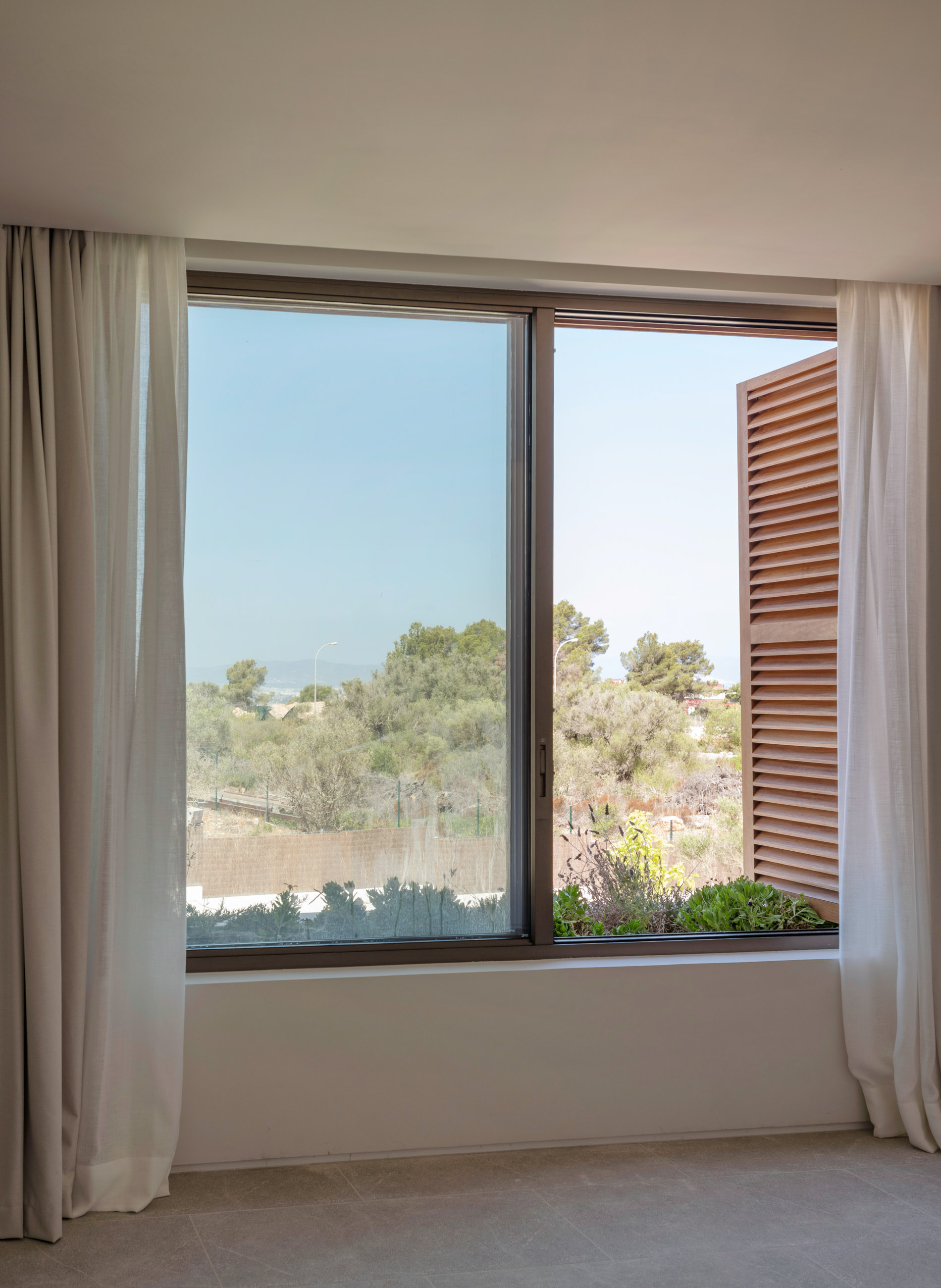 En Son Gual II, donde el paisaje se abre en suaves ondulaciones y la luz mallorquina lo abraza todo, surge una vivienda contemporánea que reinterpreta el nuevo mediterráneo desde la calma, la simplicidad y la belleza de los materiales nobles. La arquitectura juega con volúmenes puros y líneas limpias, mientras las carpinterías en bronce mate y los muros de hormigón aportan solidez, carácter y una estética atemporal.