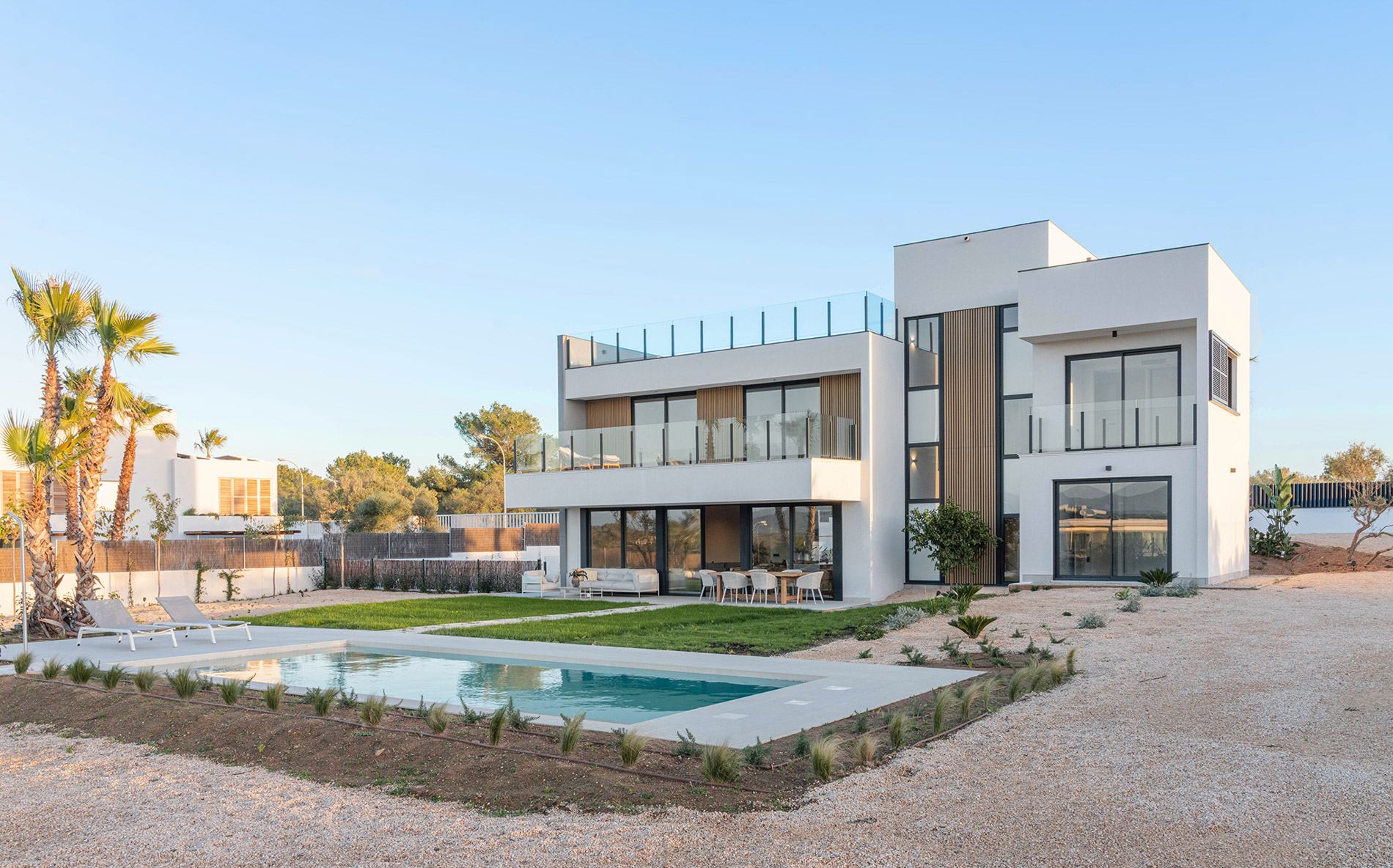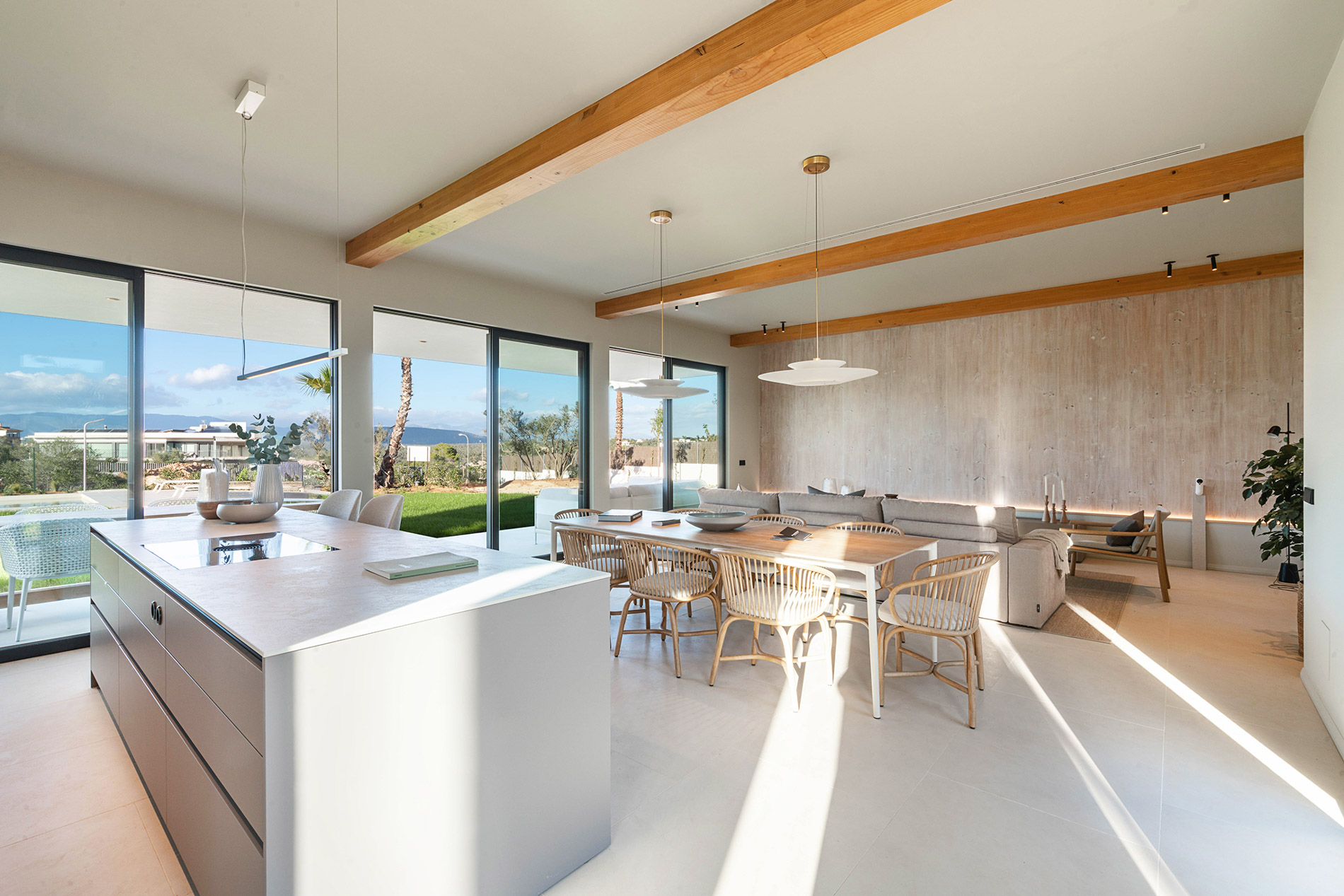 En una de las zonas residenciales más tranquilas y codiciadas del centro de Mallorca, surge esta villa contemporánea que combina un diseño arquitectónico de líneas limpias con una construcción sostenible basada en madera laminada cruzada (CLT), un sistema que aporta eficiencia energética, aislamiento natural y una estética cálida y moderna.