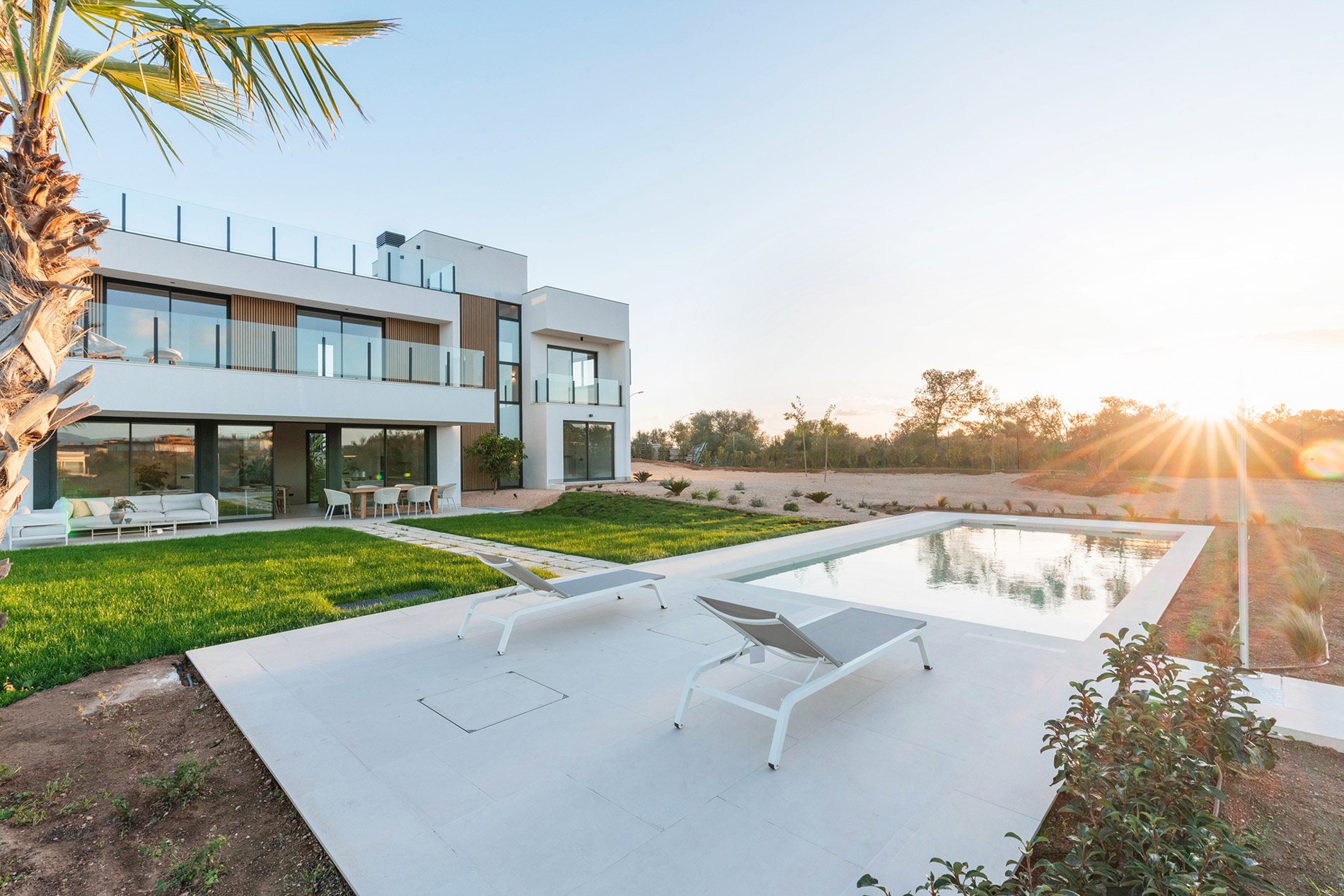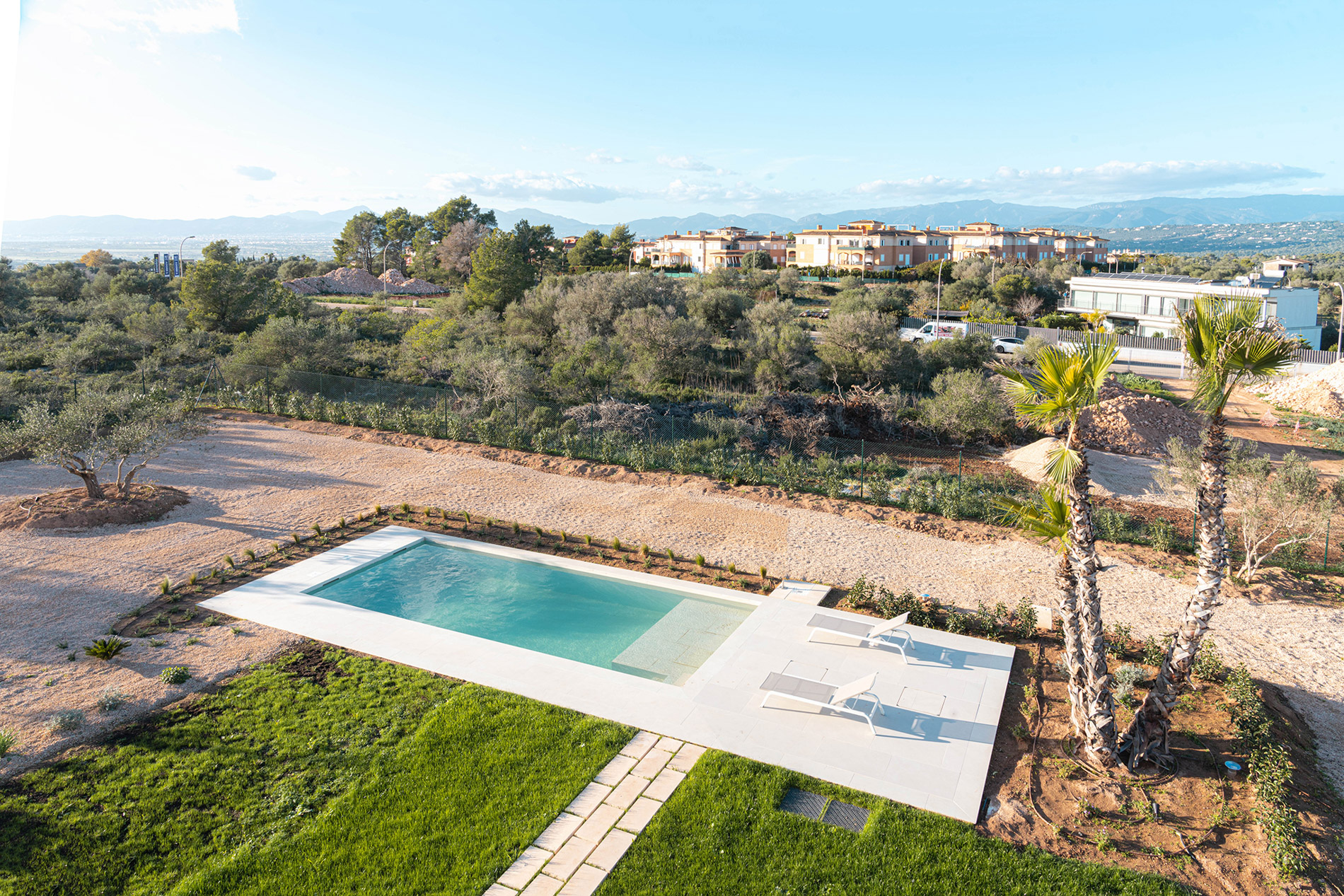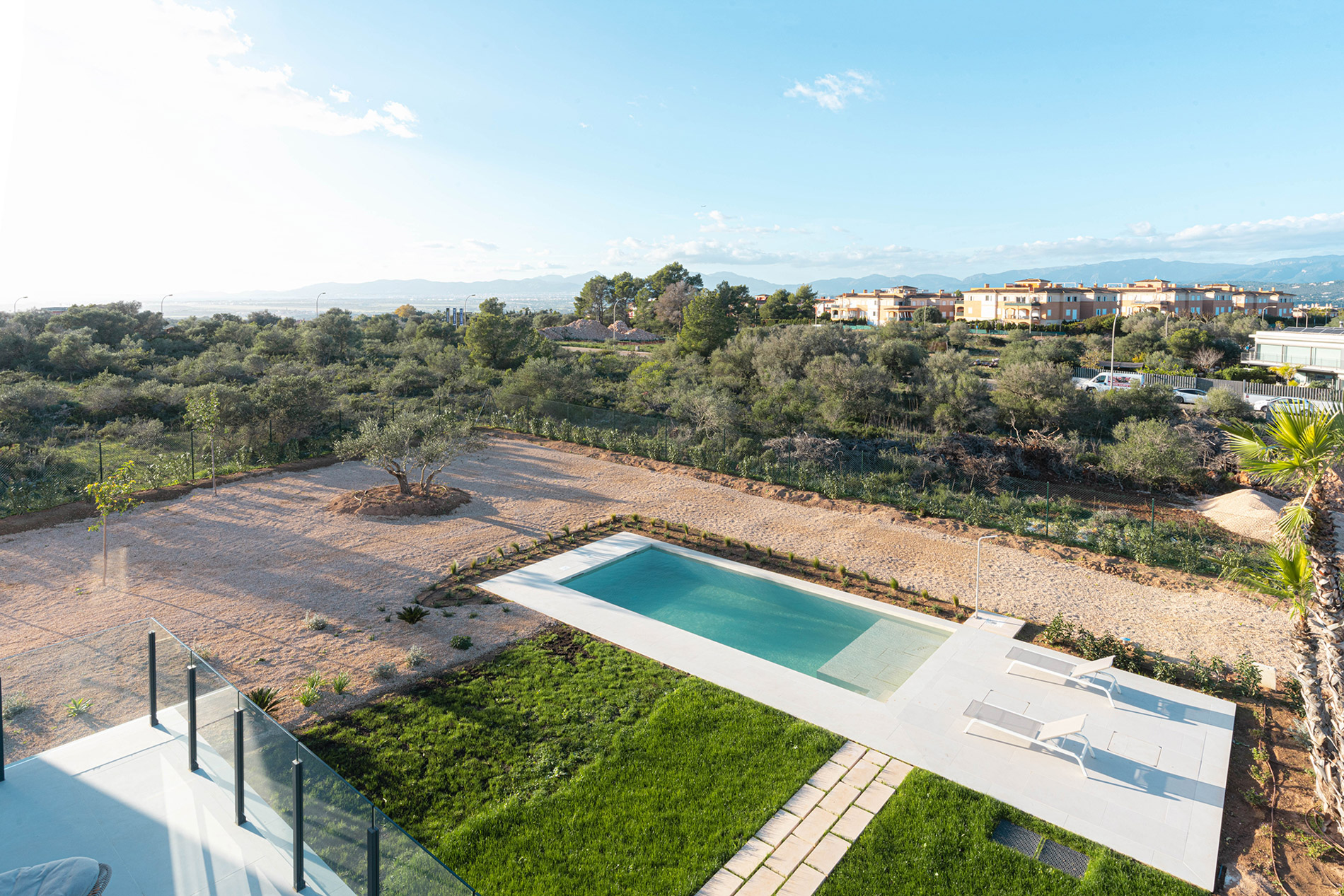En una de las zonas residenciales más tranquilas y codiciadas del centro de Mallorca, surge esta villa contemporánea que combina un diseño arquitectónico de líneas limpias con una construcción sostenible basada en madera laminada cruzada (CLT), un sistema que aporta eficiencia energética, aislamiento natural y una estética cálida y moderna. La propiedad se despliega sobre un amplio terreno de 2.000 m² y ofrece 350 m² de vivienda donde cada espacio ha sido concebido para disfrutar de la luz, la amplitud y las vistas abiertas hacia la Bahía de Palma y la Serra de Tramuntana. En el interior, los materiales nobles y los detalles de diseño crean una atmósfera elegante y serena: suelos de Dekton, carpinterías de alta calidad y una distribución fluida que invita a vivir la casa con calma. La zona de día se abre hacia el jardín a través de grandes ventanales que conectan salón, comedor y exteriores de manera natural. La cocina, moderna y perfectamente integrada, actúa como núcleo social de la vivienda. Los cuatro dormitorios y tres baños combinan funcionalidad y confort, ofreciendo privacidad y luz en cada estancia. El exterior se convierte en un oasis perfecto para el clima mediterráneo: una piscina rodeada de vegetación, una casa de la piscina ideal para encuentros veraniegos, amplias terrazas que suman 195 m² y un comedor exterior pensado para prolongar la vida al aire libre. La villa cuenta además con un garaje subterráneo, ascensor desde el sótano hasta la azotea y espacios polivalentes que pueden destinarse a gimnasio, cine o bodega. Situada a solo quince minutos de Palma y muy cerca del prestigioso campo de golf de Son Gual, la propiedad ofrece la combinación perfecta entre naturaleza, privacidad y conexión con la ciudad. A pocos minutos, el encantador pueblo de Algaida dispone de todas las comodidades necesarias para la vida diaria. MallorcaSite, su agencia inmobiliaria en Mallorca, recomienda esta propiedad por su arquitectura sostenible, su diseño contemporáneo y su magnífica ubicación.