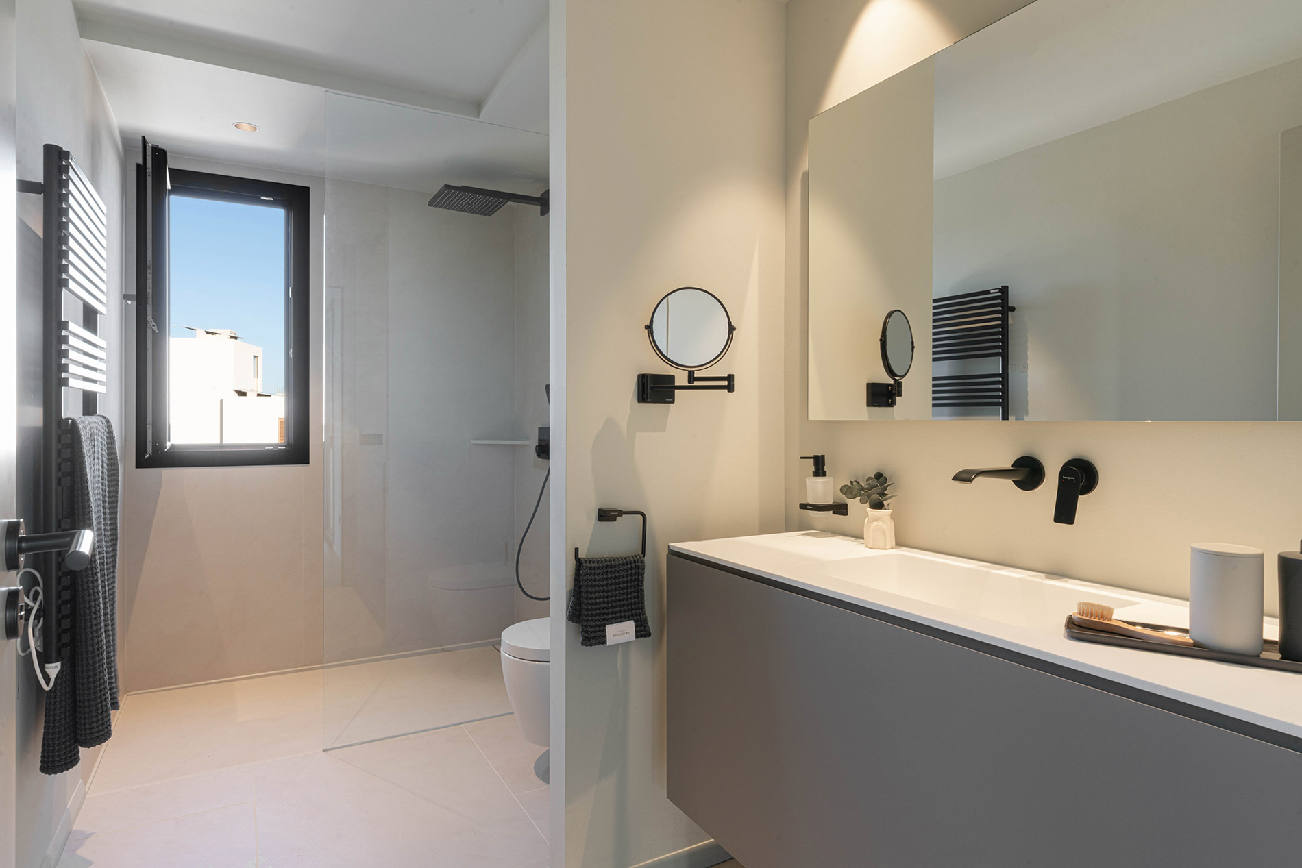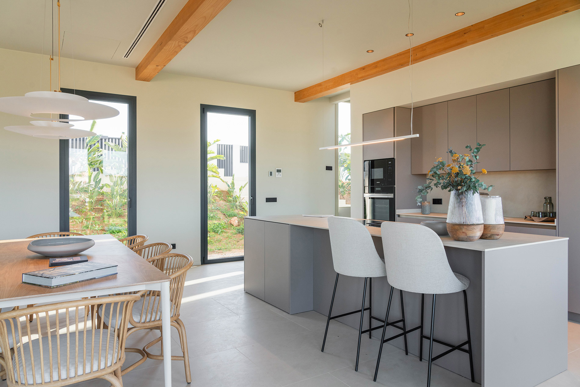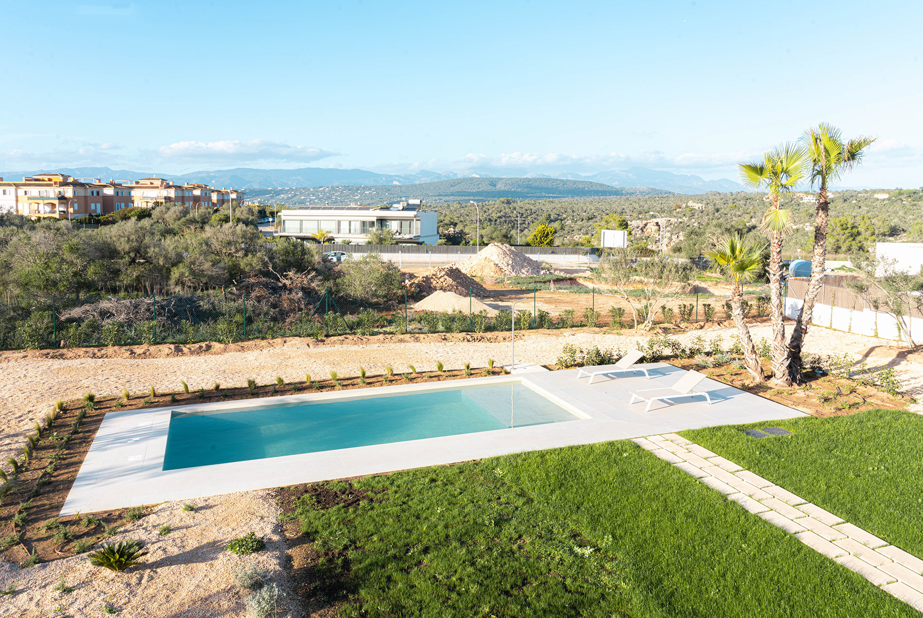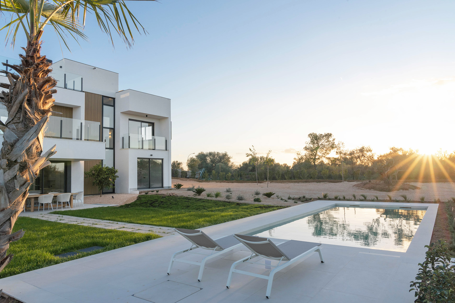 En una de las zonas residenciales más tranquilas y codiciadas del centro de Mallorca, surge esta villa contemporánea que combina un diseño arquitectónico de líneas limpias con una construcción sostenible basada en madera laminada cruzada (CLT), un sistema que aporta eficiencia energética, aislamiento natural y una estética cálida y moderna. La propiedad se despliega sobre un amplio terreno de 2.000 m² y ofrece 350 m² de vivienda donde cada espacio ha sido concebido para disfrutar de la luz, la amplitud y las vistas abiertas hacia la Bahía de Palma y la Serra de Tramuntana. En el interior, los materiales nobles y los detalles de diseño crean una atmósfera elegante y serena: suelos de Dekton, carpinterías de alta calidad y una distribución fluida que invita a vivir la casa con calma. La zona de día se abre hacia el jardín a través de grandes ventanales que conectan salón, comedor y exteriores de manera natural. La cocina, moderna y perfectamente integrada, actúa como núcleo social de la vivienda. Los cuatro dormitorios y tres baños combinan funcionalidad y confort, ofreciendo privacidad y luz en cada estancia. El exterior se convierte en un oasis perfecto para el clima mediterráneo: una piscina rodeada de vegetación, una casa de la piscina ideal para encuentros veraniegos, amplias terrazas que suman 195 m² y un comedor exterior pensado para prolongar la vida al aire libre. La villa cuenta además con un garaje subterráneo, ascensor desde el sótano hasta la azotea y espacios polivalentes que pueden destinarse a gimnasio, cine o bodega. Situada a solo quince minutos de Palma y muy cerca del prestigioso campo de golf de Son Gual, la propiedad ofrece la combinación perfecta entre naturaleza, privacidad y conexión con la ciudad. A pocos minutos, el encantador pueblo de Algaida dispone de todas las comodidades necesarias para la vida diaria. MallorcaSite, su agencia inmobiliaria en Mallorca, recomienda esta propiedad por su arquitectura sostenible, su diseño contemporáneo y su magnífica ubicación.