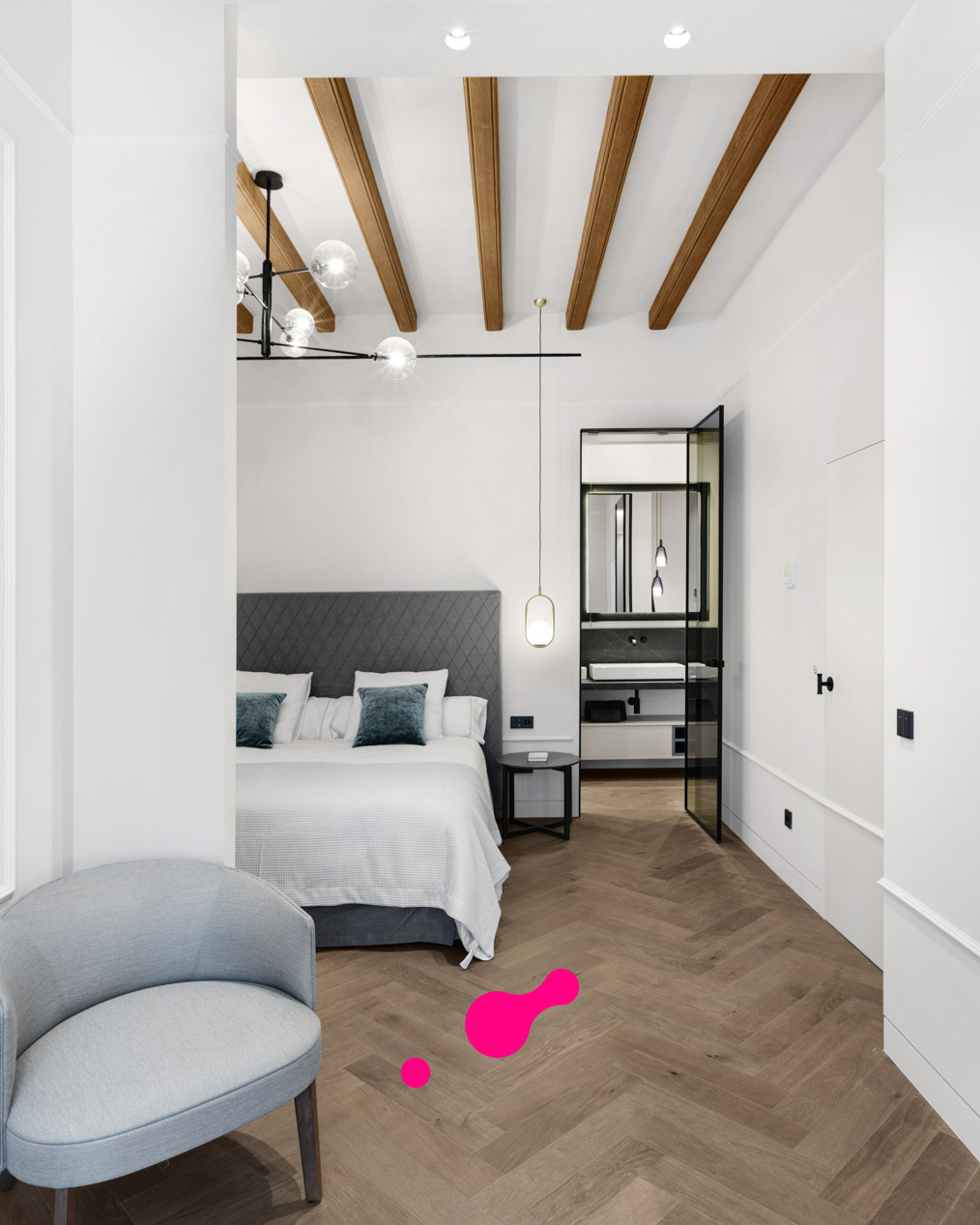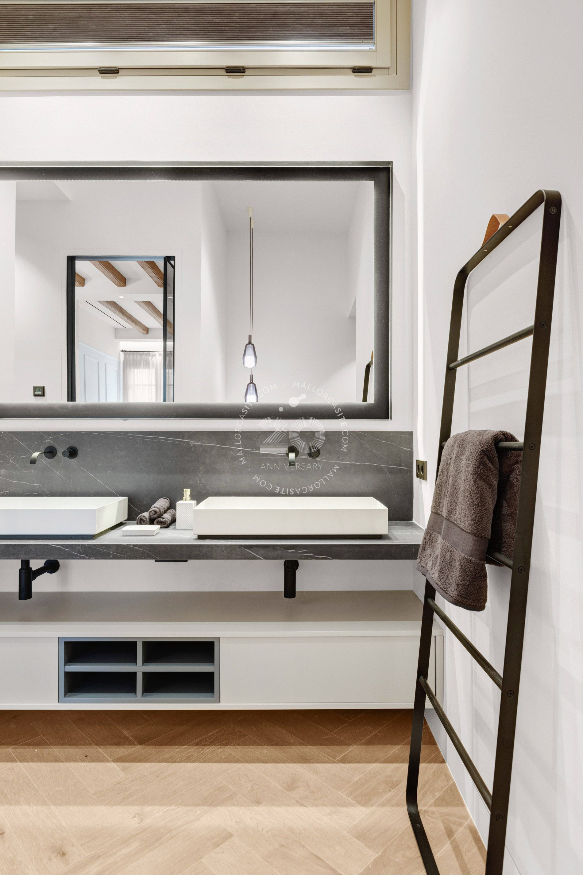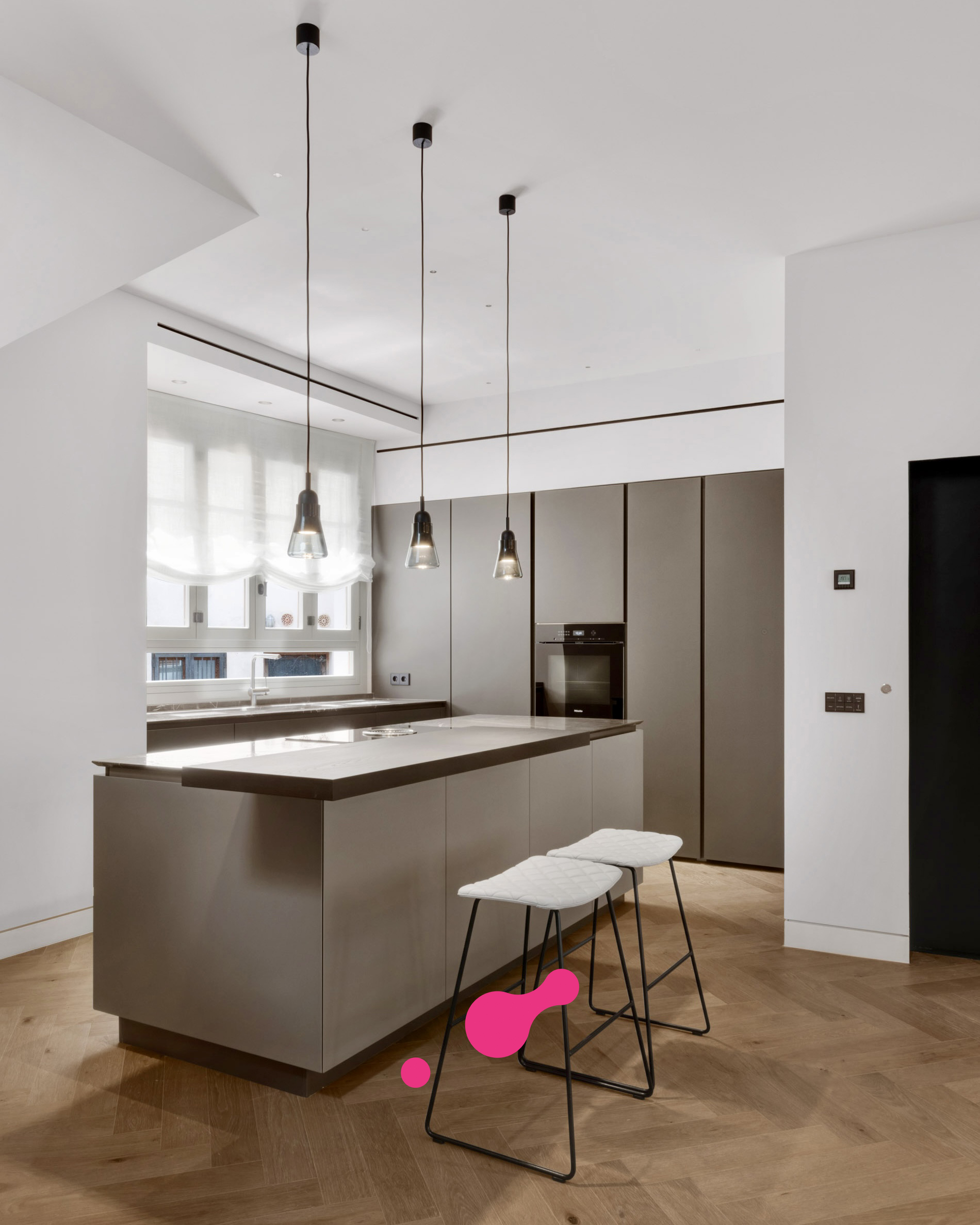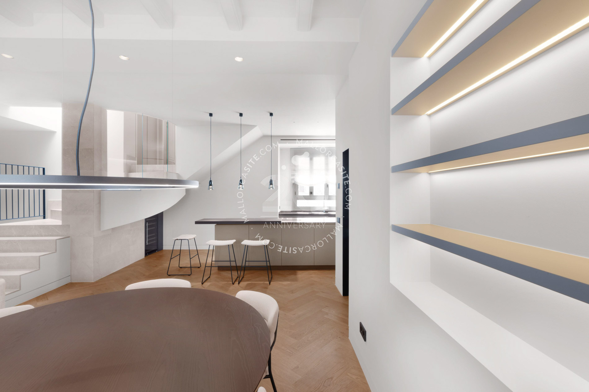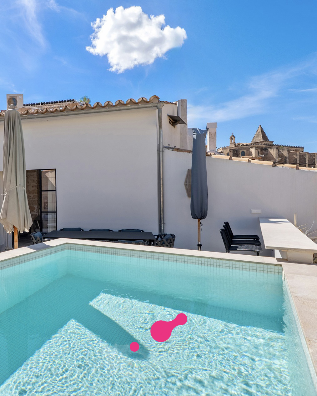 Esta vivienda ofrece tres plantas más una azotea y una bodega. En la planta baja, encontrara el garaje y la elegante entrada con paneles de madera. Desde aquí, puede subir por la elegante y auténtica escalera o por el ascensor hasta saón en la segunda planta, que crea un ambiente impresionante con techos altos. Una cocina moderna de Varenna (Poliform) con isla forma el corazón de este salón. Los acabados estan hechas a medida de madera con piedra natural fina y una moderna chimenea de gas en el salón proporcionan un ambiente acogedor y un toque individual. Un piso mas arriba está la azotea con piscina. Para las horas relajadas hay una zona de barbacoa y una pequeña cocina con nevera, superficie de trabajo y fregadero. Debajo de la terraza de la azotea se encuentra la amplia suite de invitados con baño y vestidor. El dormitorio principal con su propio salón se encuentra en el 1er piso y tiene acceso directo al ascensor que conecta todos los niveles de la propiedad. La elegante suite, que impresiona con techos altos de 3,5 metros, establece nuevas tendencias en estilo. Las molduras ORAC en las paredes, un baño con tocador y un área húmeda. La suite ofrece una pequeña sala de estar con sofá y mesa de maquillaje para las damas. El elegante vestidor (hecho en Italia) seguramente entusiasmará a los propietarios. Otra habitación de invitados con baño en suite también se encuentra en esta planta. Enfrente de su puerta encontrara el mejor barrio del casco antiguo, el antiguo mercado de pescado (La Lonja), el lujoso puerto de Palma y el paseo marítimo (Paseo Marítimo). Incluso el moderno mercado de Santa Catalina se encuentra a solo 5 minutos a pie.