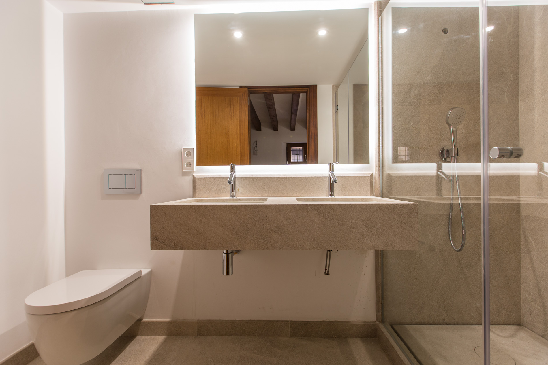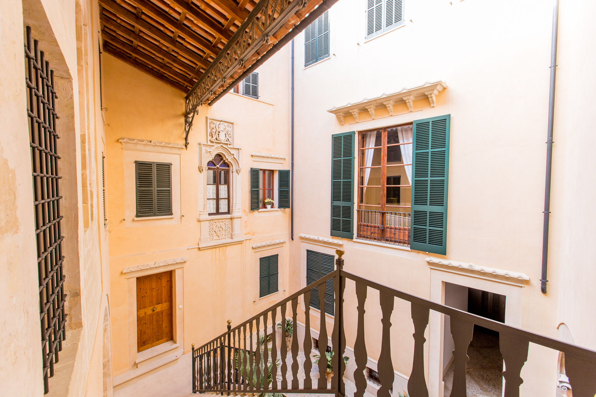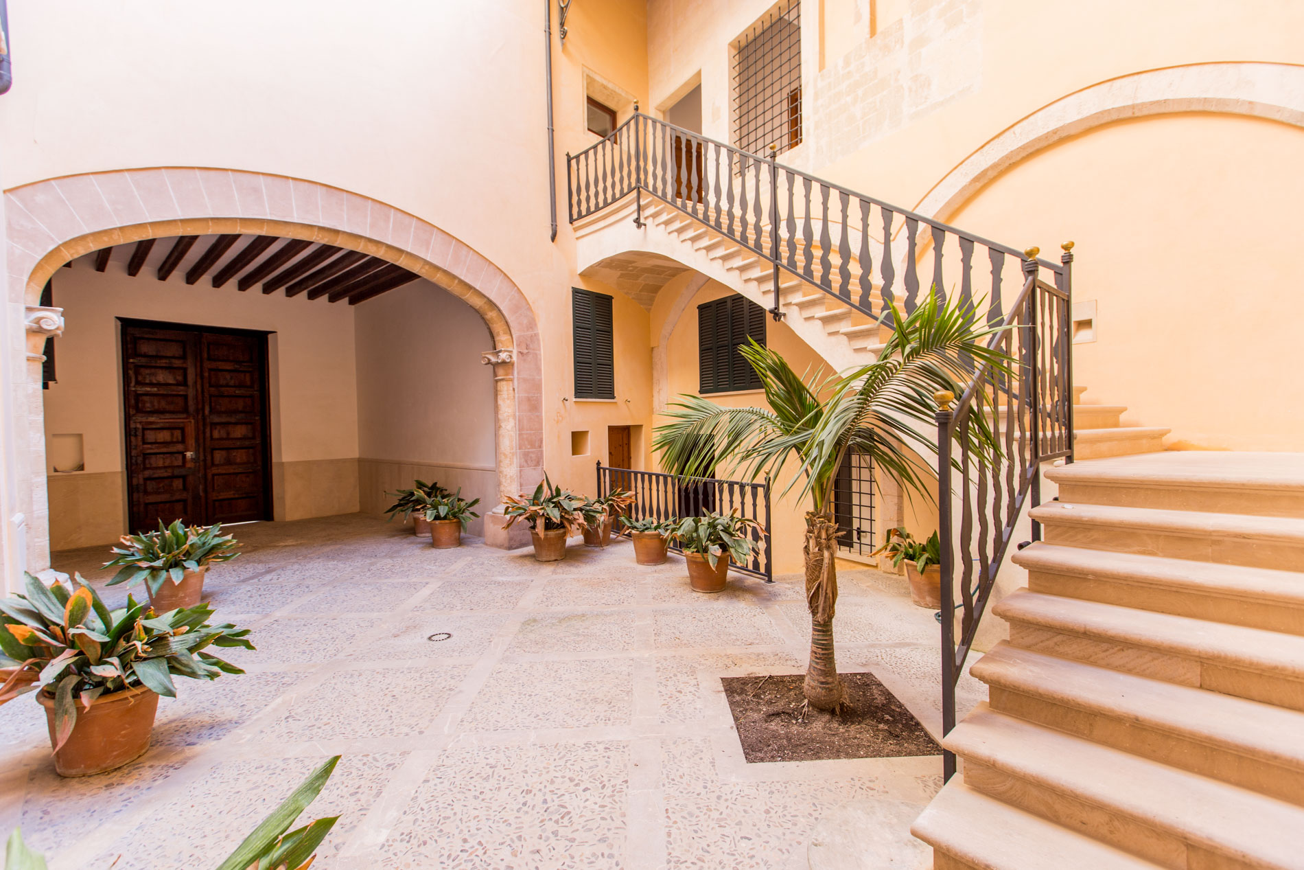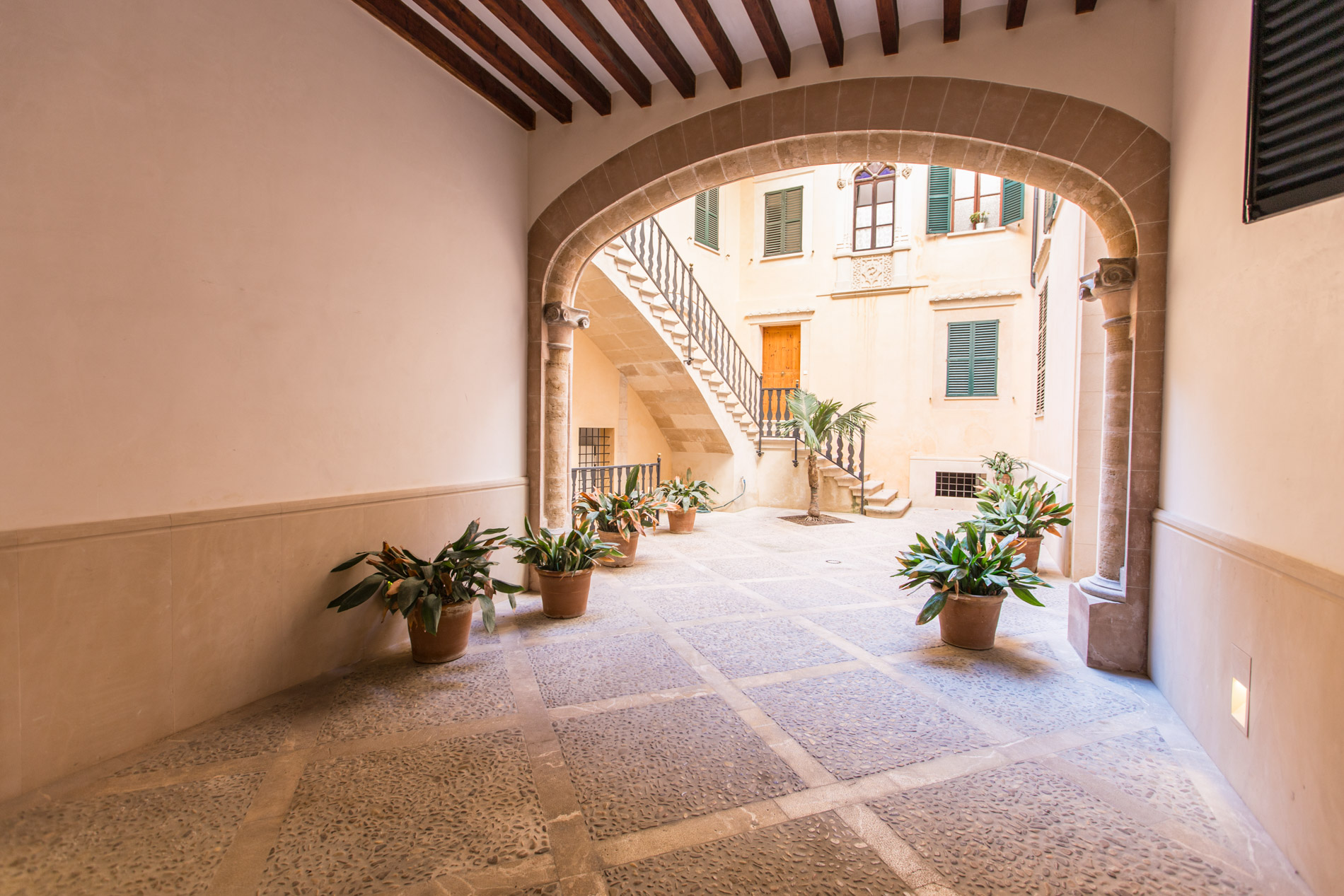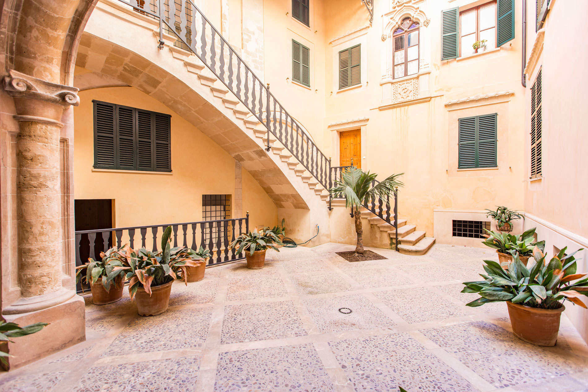 Acogedor piso de nueva construcción con materiales de alta gama, situado en un antiguo palacio rehabilitado como edificio de viviendas, situado en el casco antiguo de Palma, con sus impresionantes patios y casas señoriales en un ambiente mediterráneo