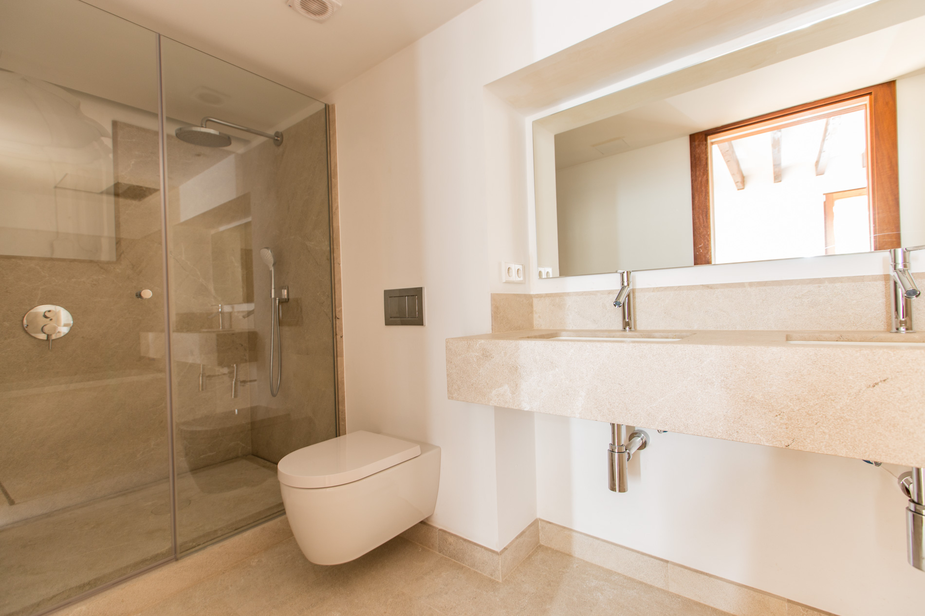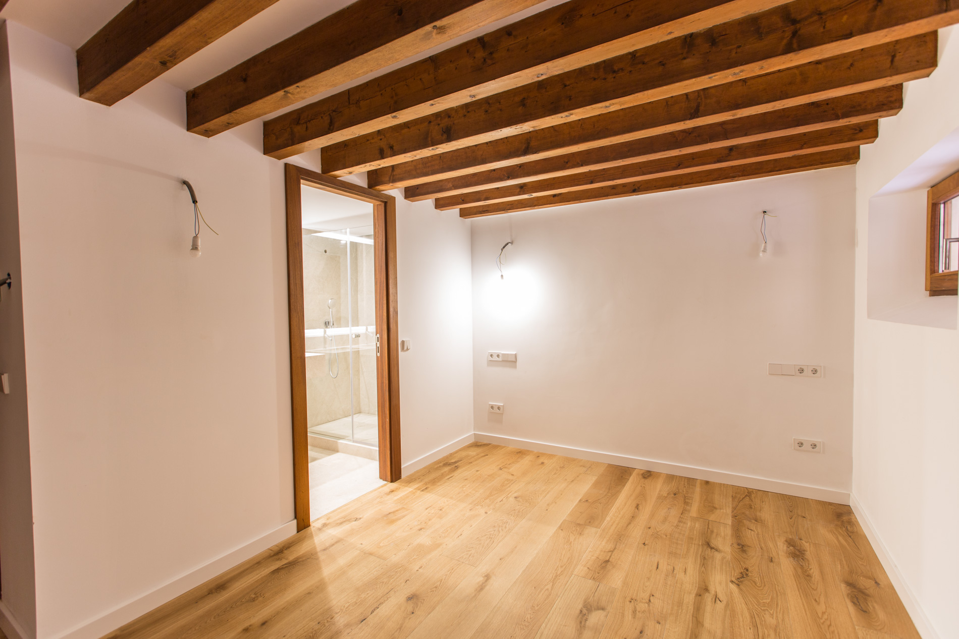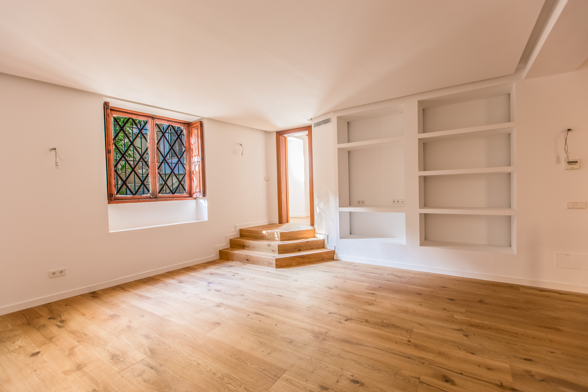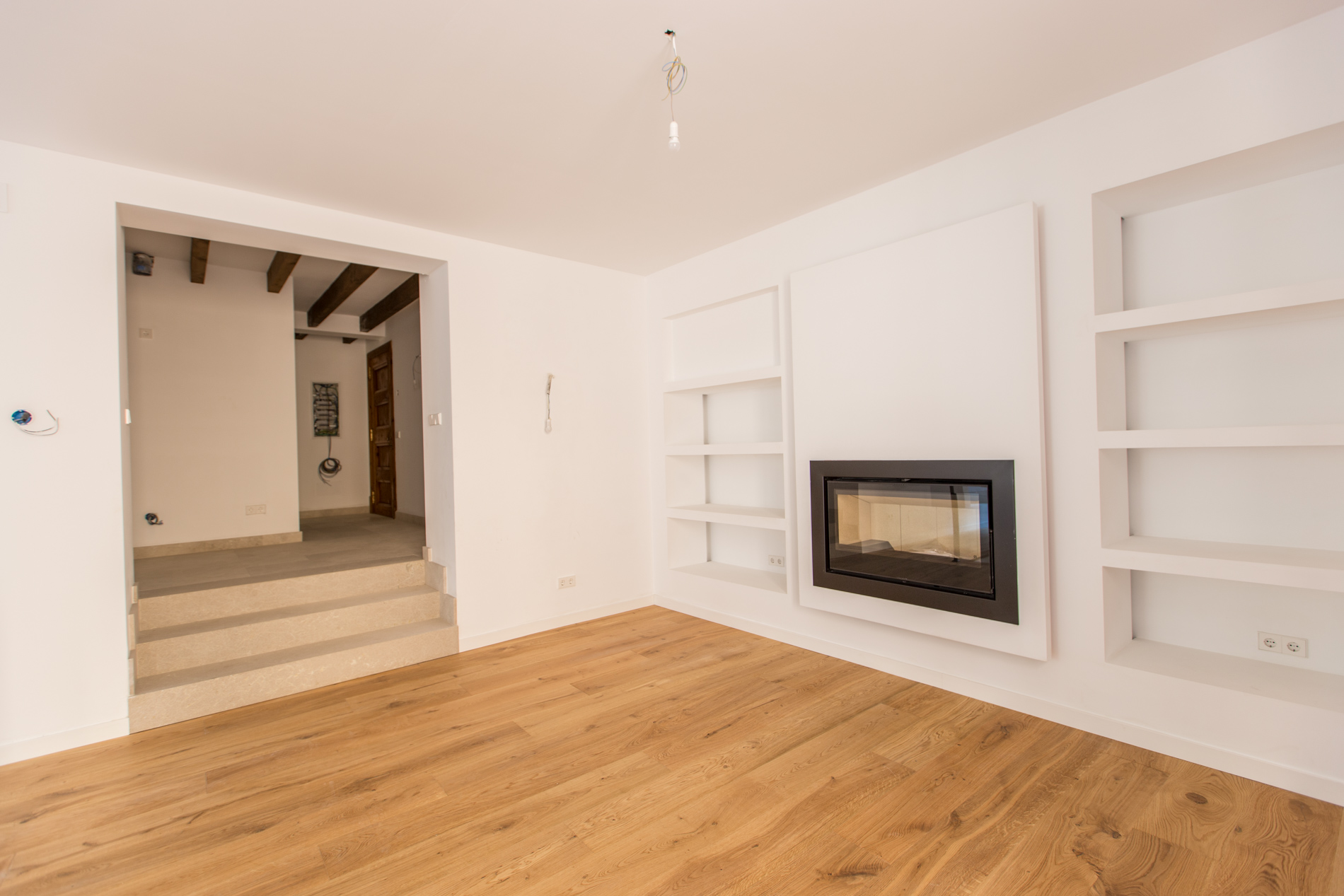 Acogedor piso de nueva construcción con materiales de alta gama, situado en un antiguo palacio rehabilitado como edificio de viviendas, situado en el casco antiguo de Palma, con sus impresionantes patios y casas señoriales en un ambiente mediterráneo. Está ubicado a pocos metros del parc de la Mar y de la Catedral. La promoción consta de 10 viviendas exclusivas en las que se han conservado los elementos históricos artísticos combinados con un diseño moderno. Esta solicitada zona histórica de Palma asegura una inversion estable. La gran demanda de alquileres y reducidos gastos comunitarios son grandes ventajas para los propietarios de pisos en el casco antiguo. El piso cuenta con cocina y aseo, comedor con chimenea con ventanal que da al bonito patio interior del palacete, salón, dormitorio con baño en suite. En la planta inferior, hay otro dormitorio con baño en suite. MallorcaSite, su agencia inmobiliaria en Mallorca, le recomienda esta propiedad por estar situado en el casco antiguo de Palma, cerca de la catedral, por ser de nueva construcción, por tener mucha luminosidad, por ser muy espacioso y por su diseño.